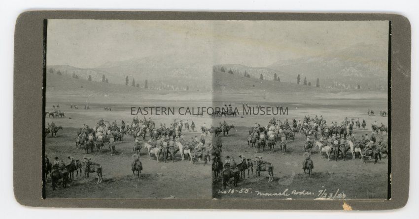 Stereopticon card titled "Monache Rodeo" dated July 23,1920, made by Pacific Art Co. of Los Angeles. It has ID #10-55.Collection