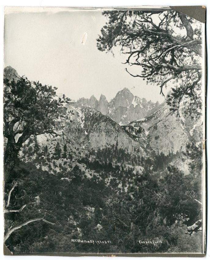 Mounted photograph titled, "Mt. Whitney, 14,502 Ft." taken by photographer by A. A. Forbes.Collection
