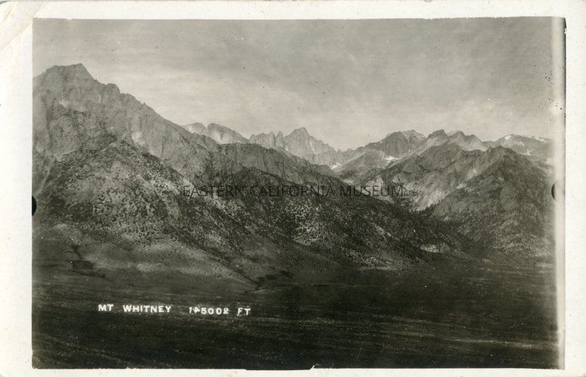 Photo postcard of Mt. Whitney labeled, "Mt. Whitney, 15,002 ft." It was sent to Howard's wife in South Pasadena.