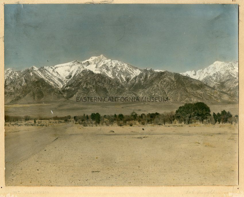 Mounted color photo of Mt. Williamson after the removal of barracks taken by L. [Lou] + C. [Carol] Frizzell. Titled in lower left corner "Mt. Williamson" and signed in lower right corner.Photograph Details