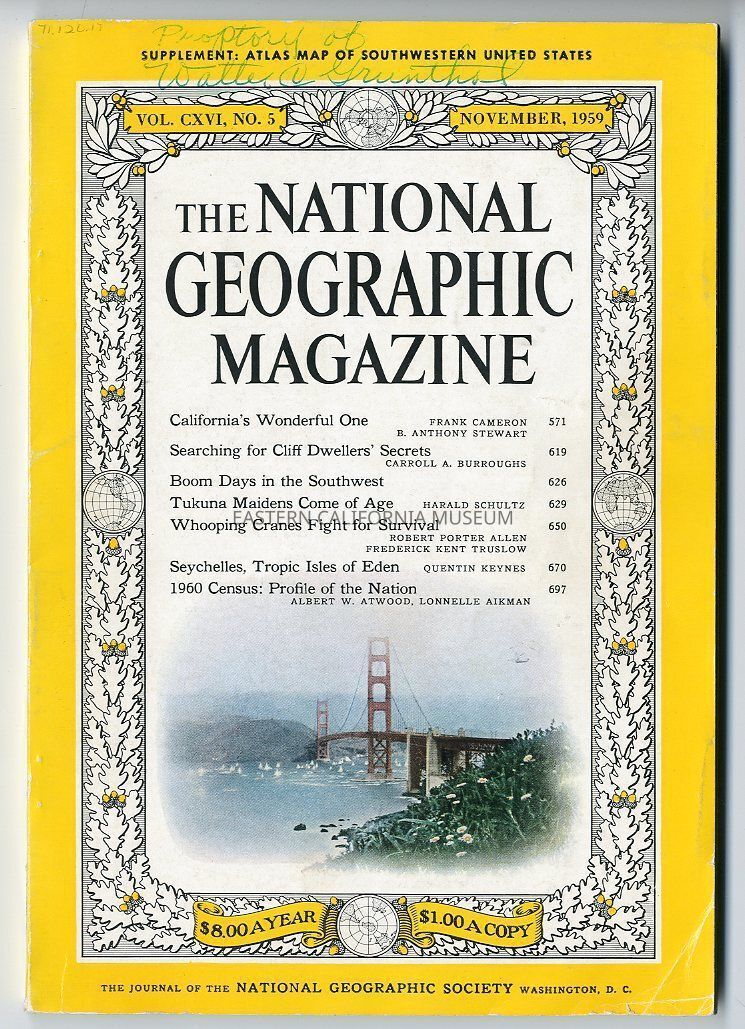 "National Geographic Magazine, Vol. CXVI, No. 5, November 1959" has "Property of Watler C. Grunthal" written on front cover.Publication Details