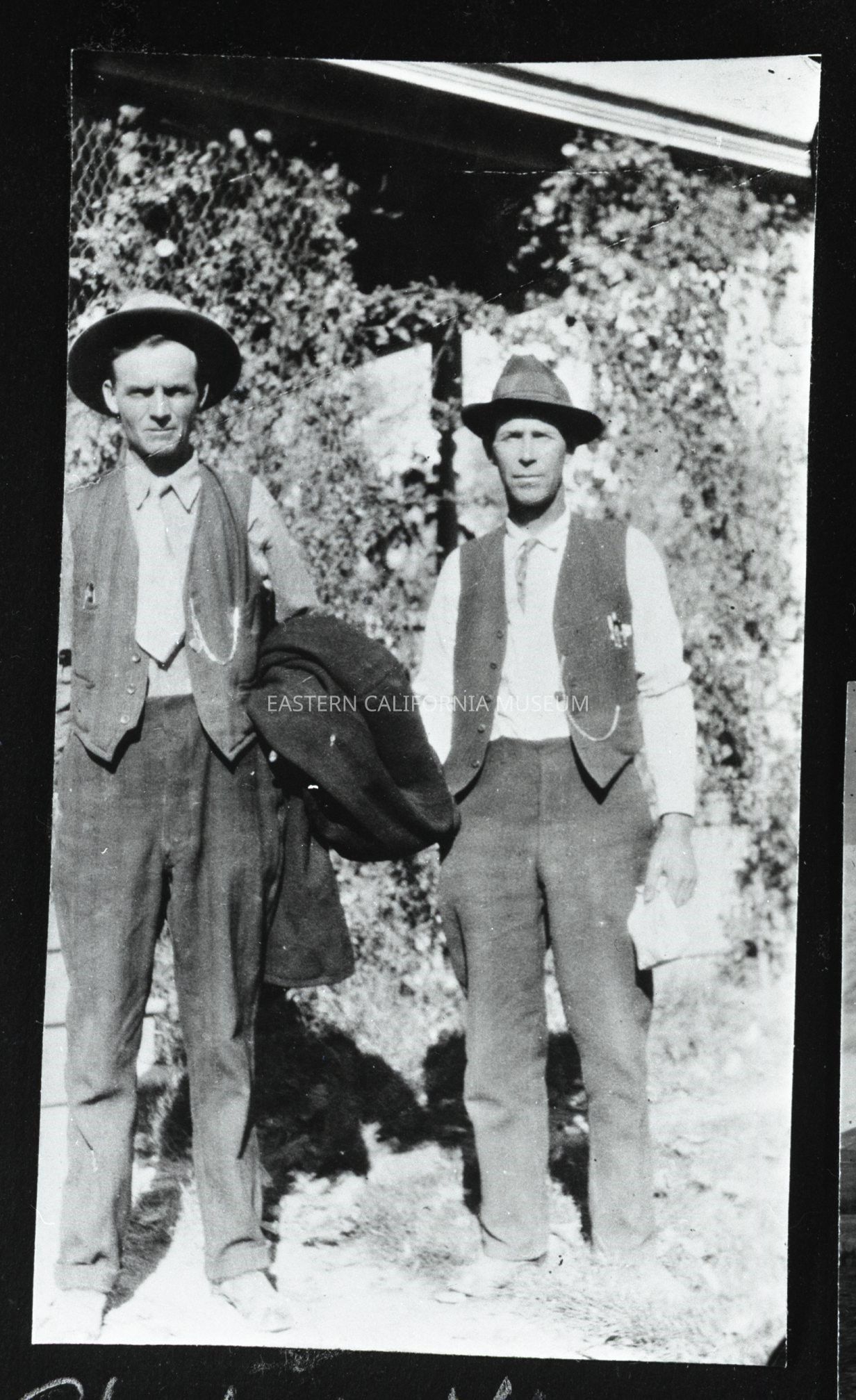 Negative of two men who are identified as Chet [Chester] and Viv [Vivian] Jones, circa 1912.