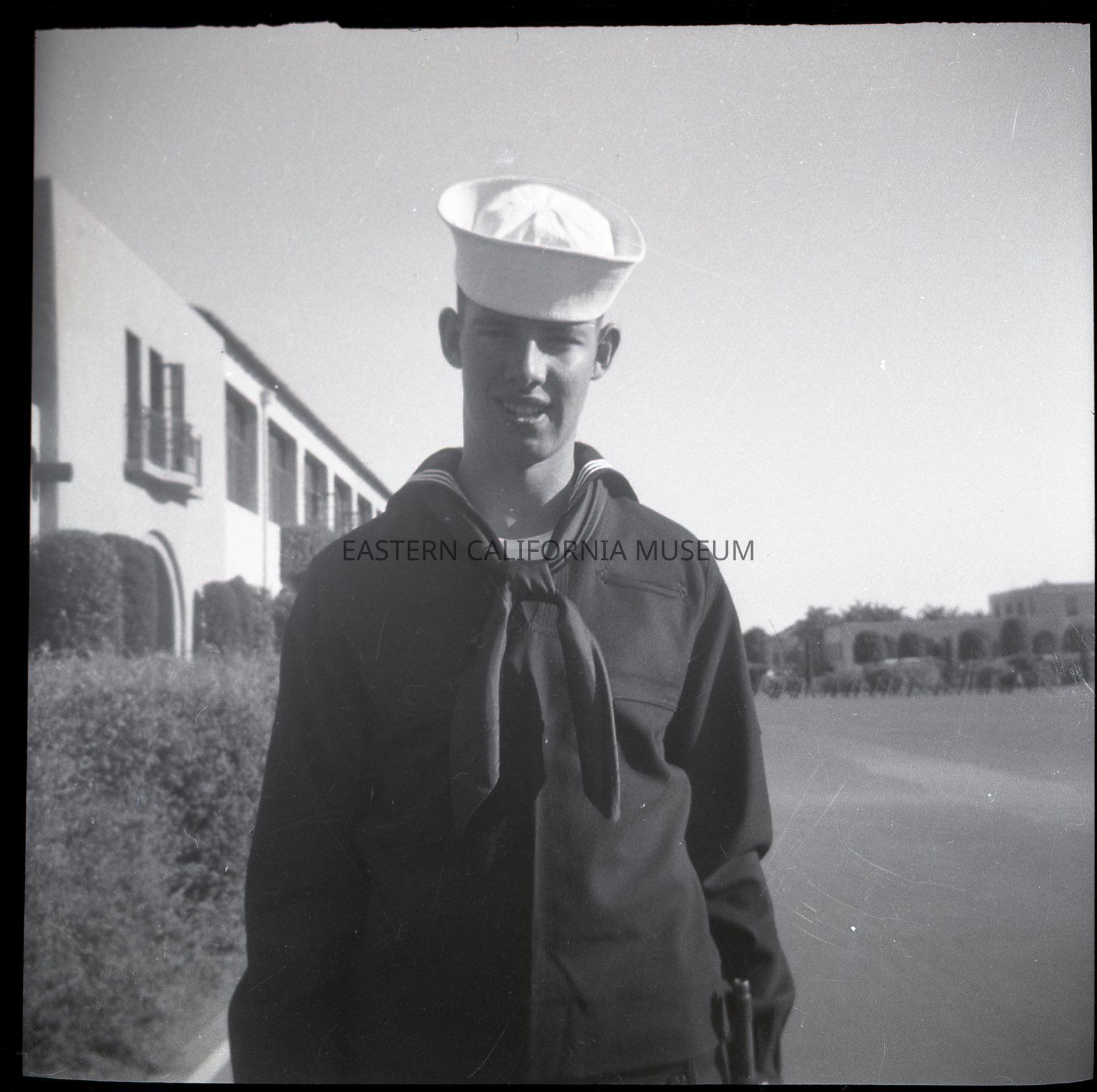 Negative of a young man, possibly Marvin Donald Smith, in a sailor's uniform.
