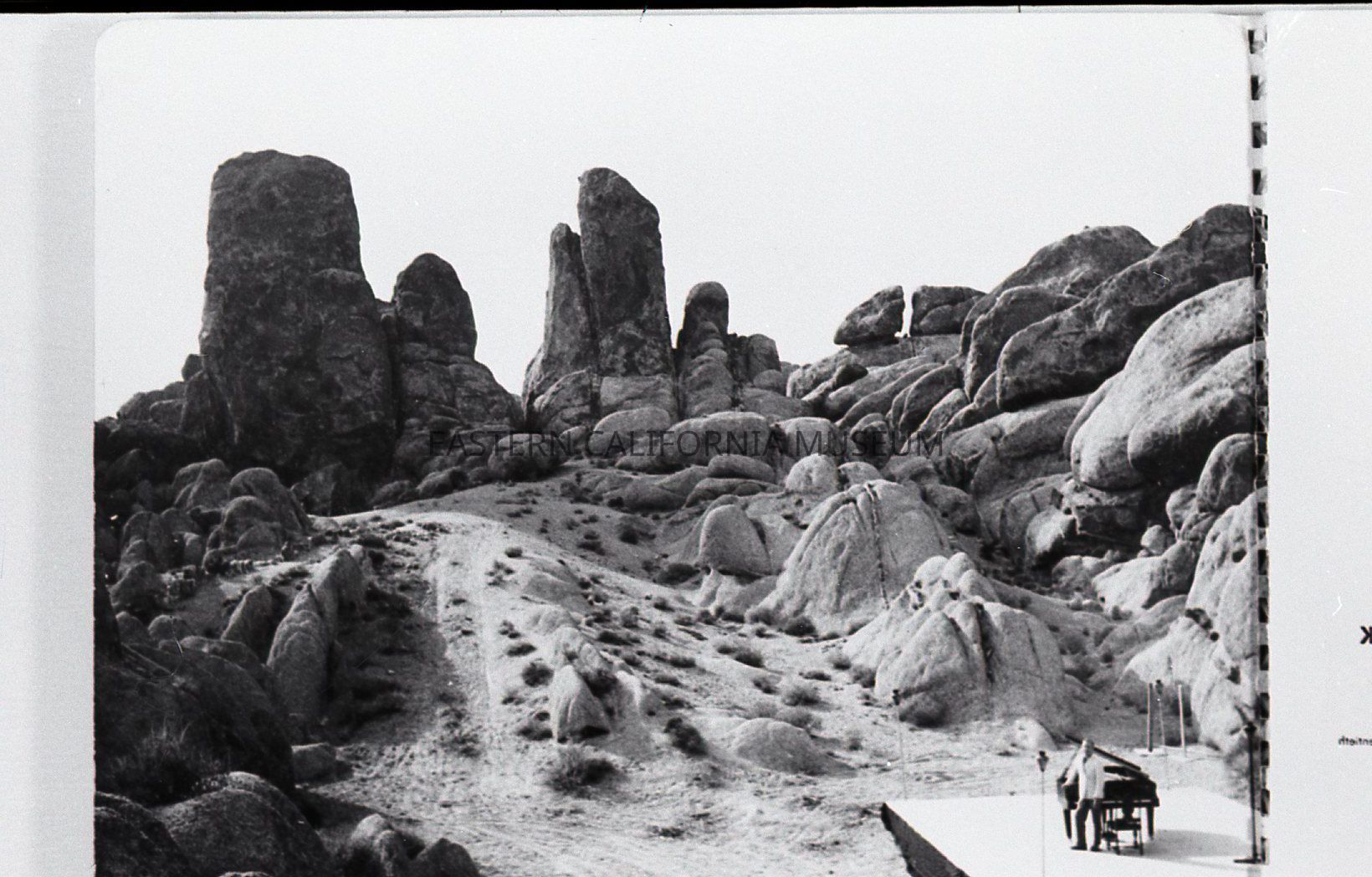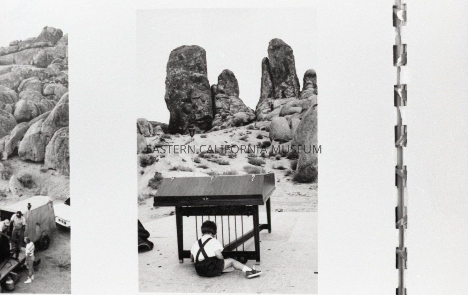 Collection of 13 negatives of the Deepest Valley Theatre in the Alabama Hills. They appear to have been photographed from an album or booklet.
