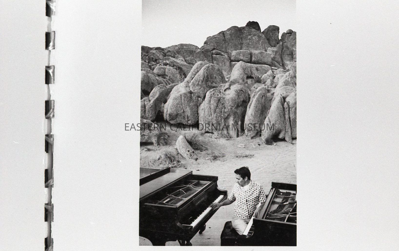 2023.0.393--Man (John Ranck?) testing both pianos on stage.