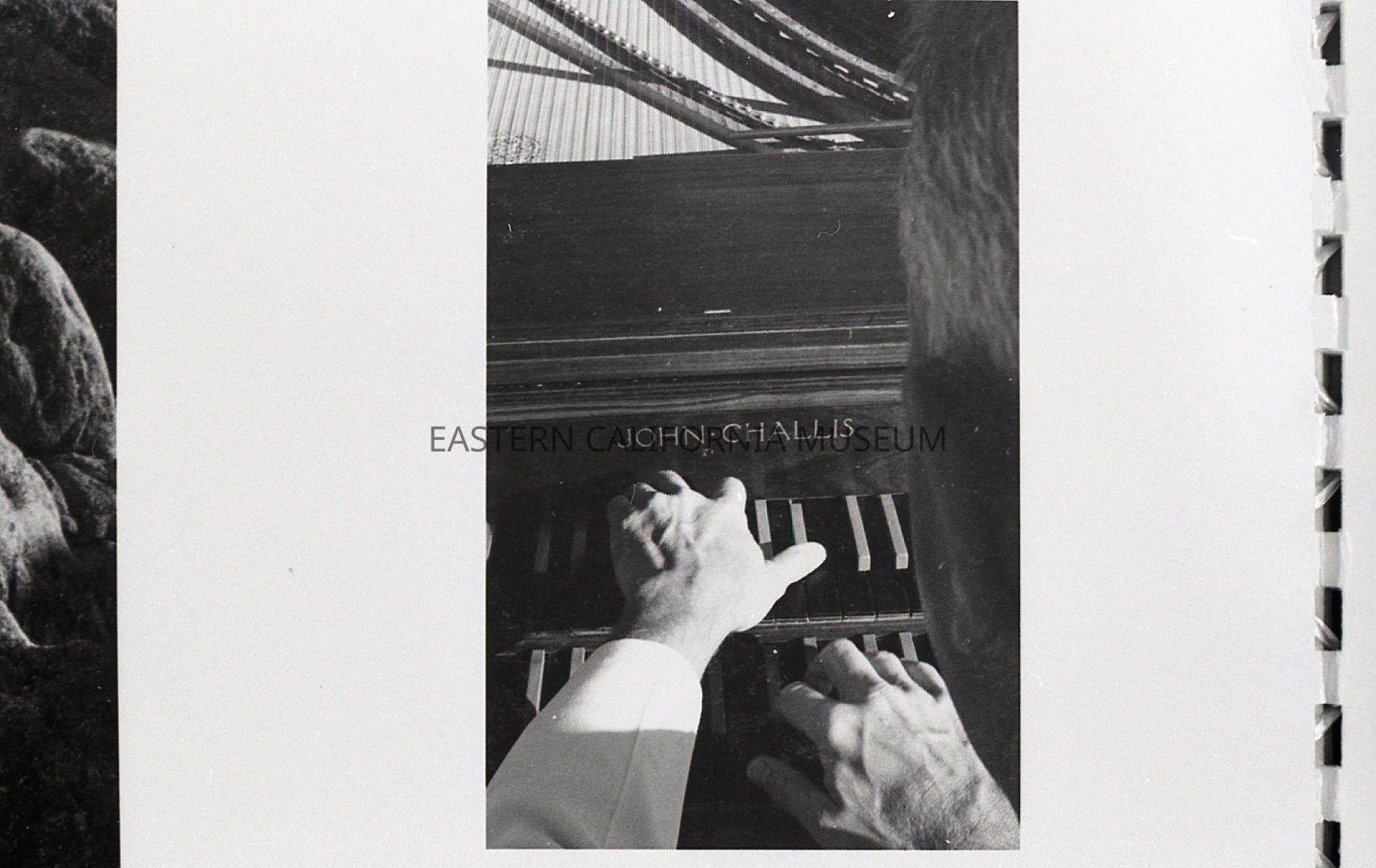 2023.0.395--Close-up photo of man's hands playing harpsichord (John Challis made the instrument).