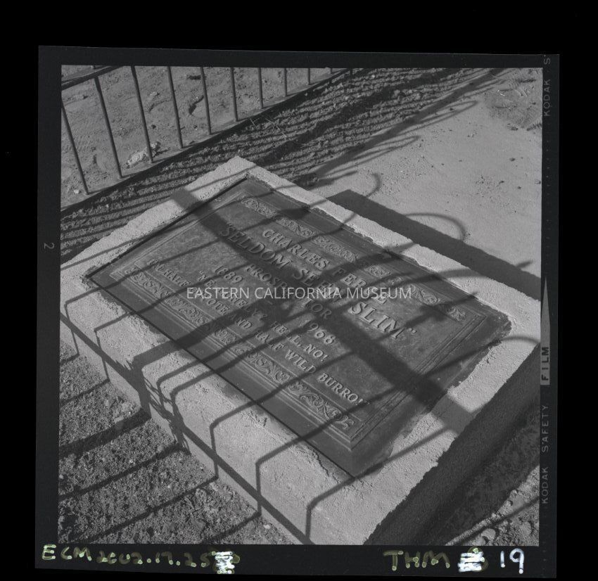 Negative of the marker at Seldom Seen Slim's gravesite.