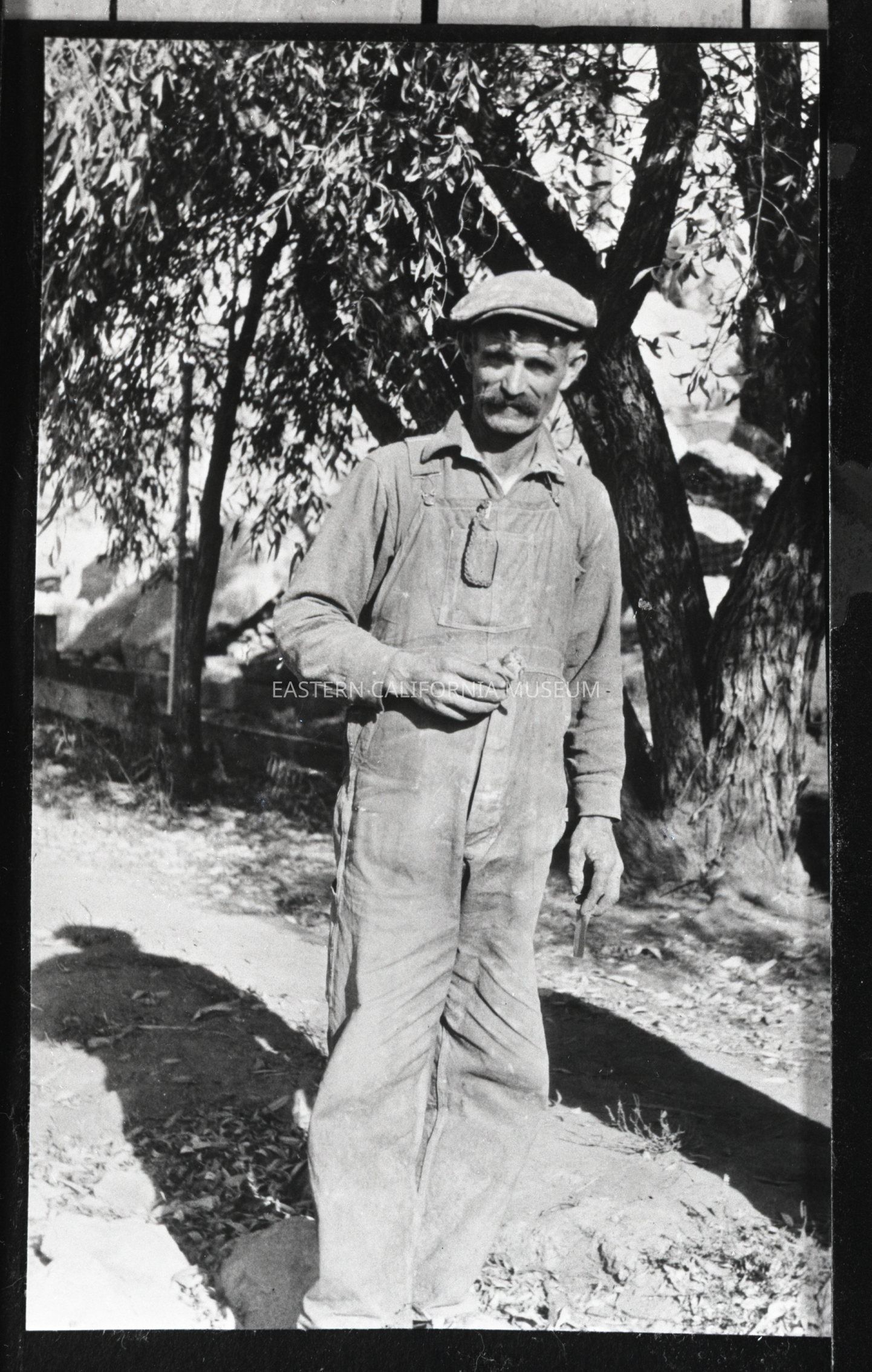 Negative of a man identified as "The Boss" of the quarry works in Round Valley, circa 1920s.