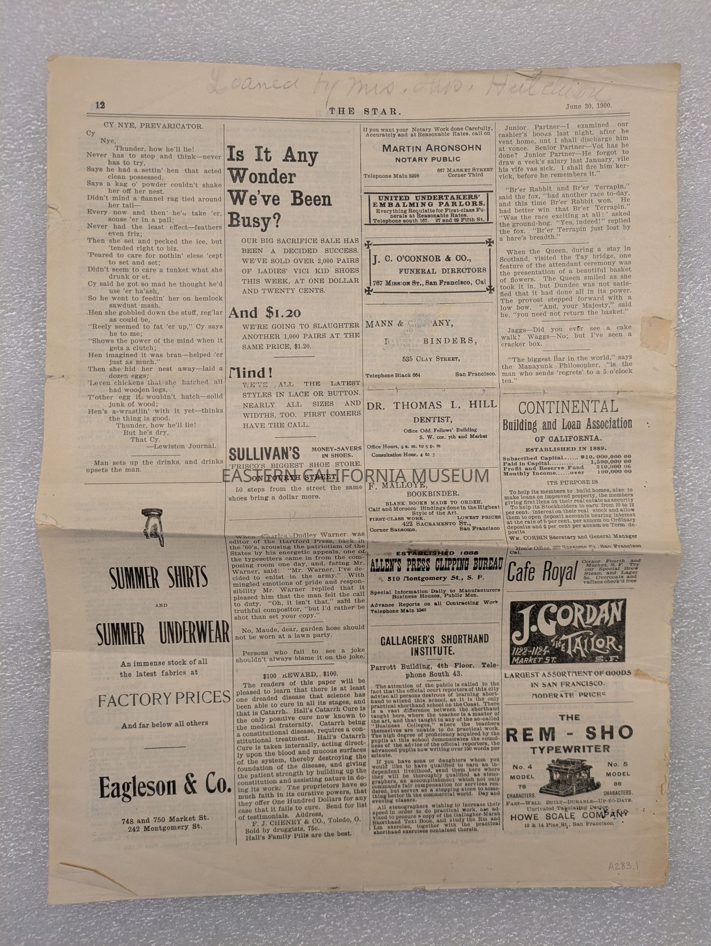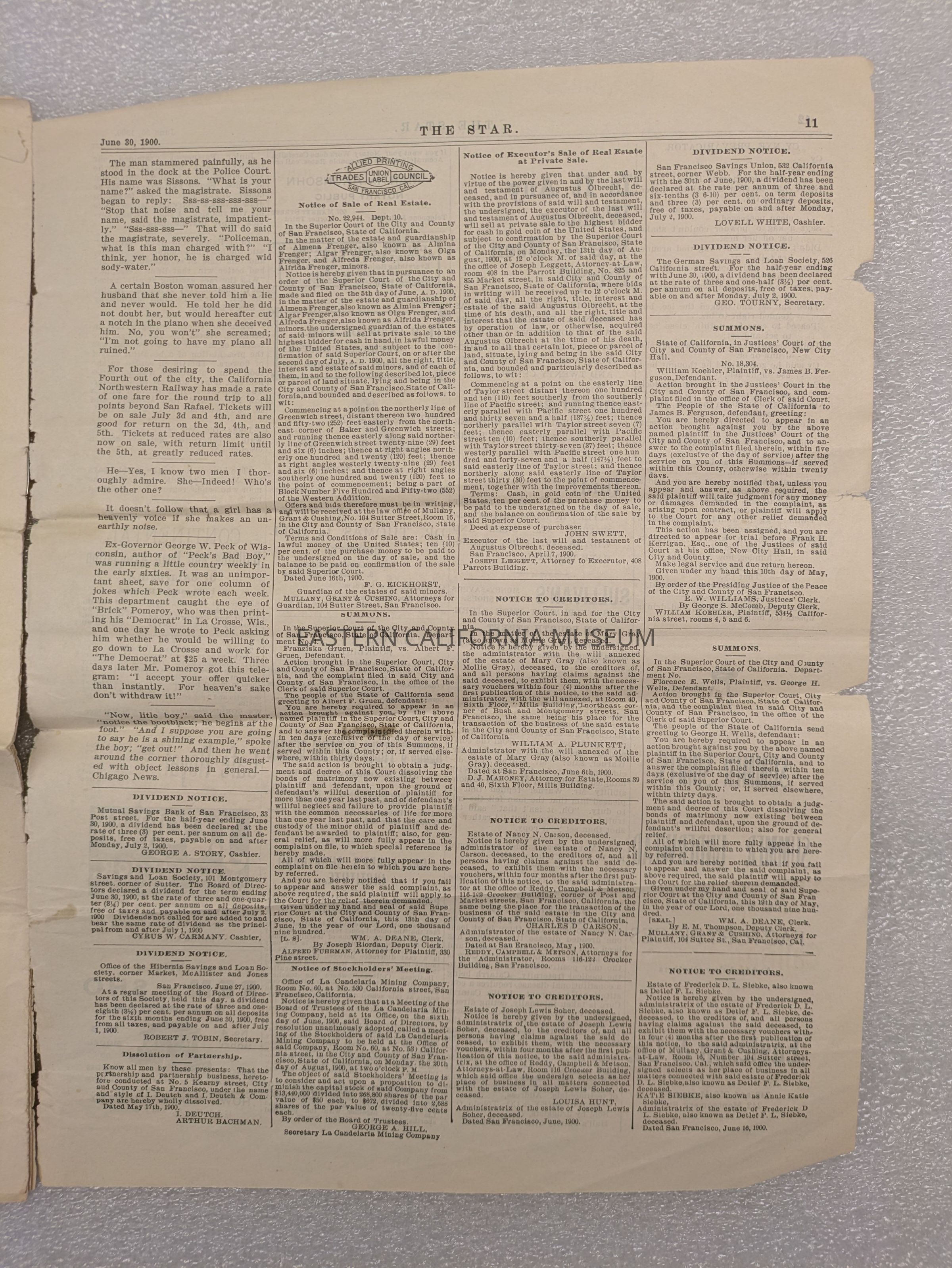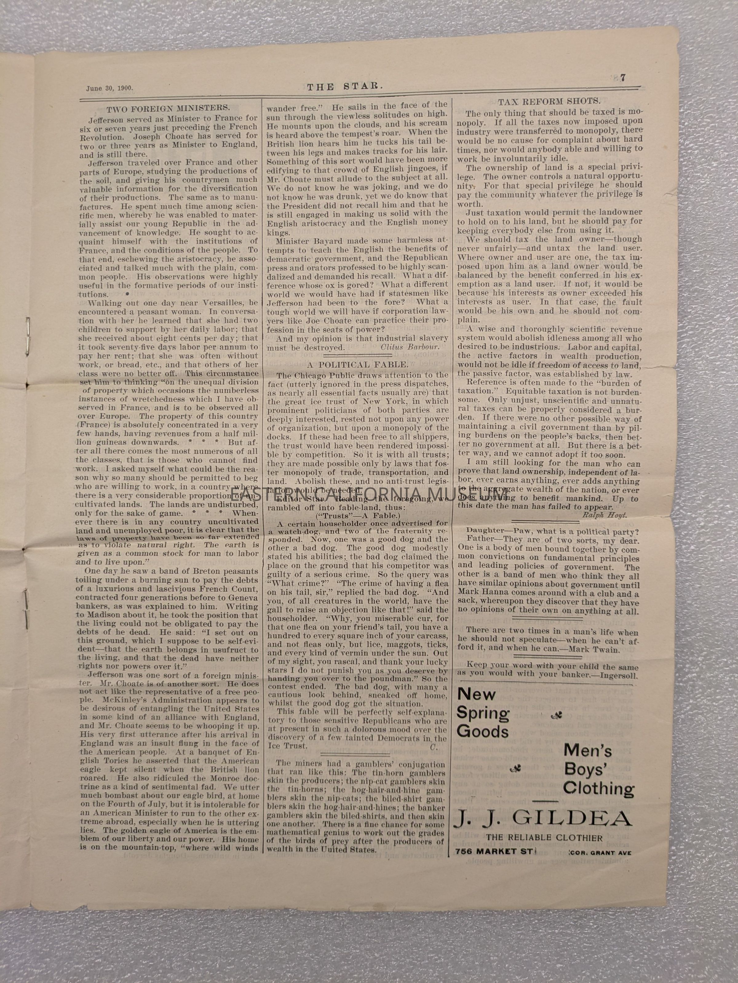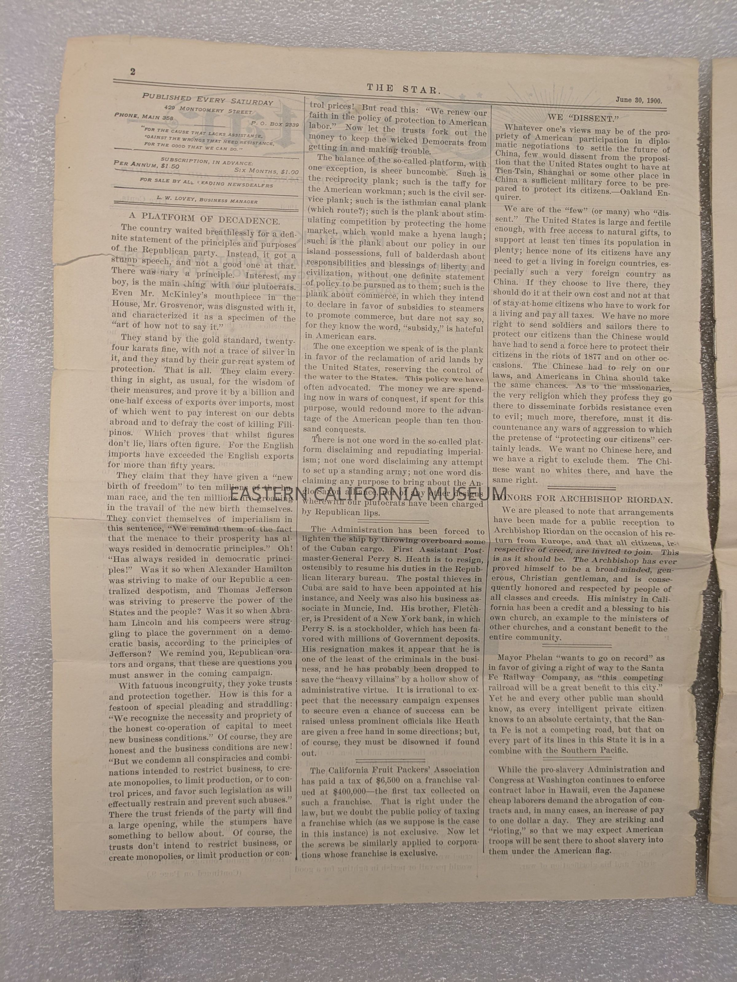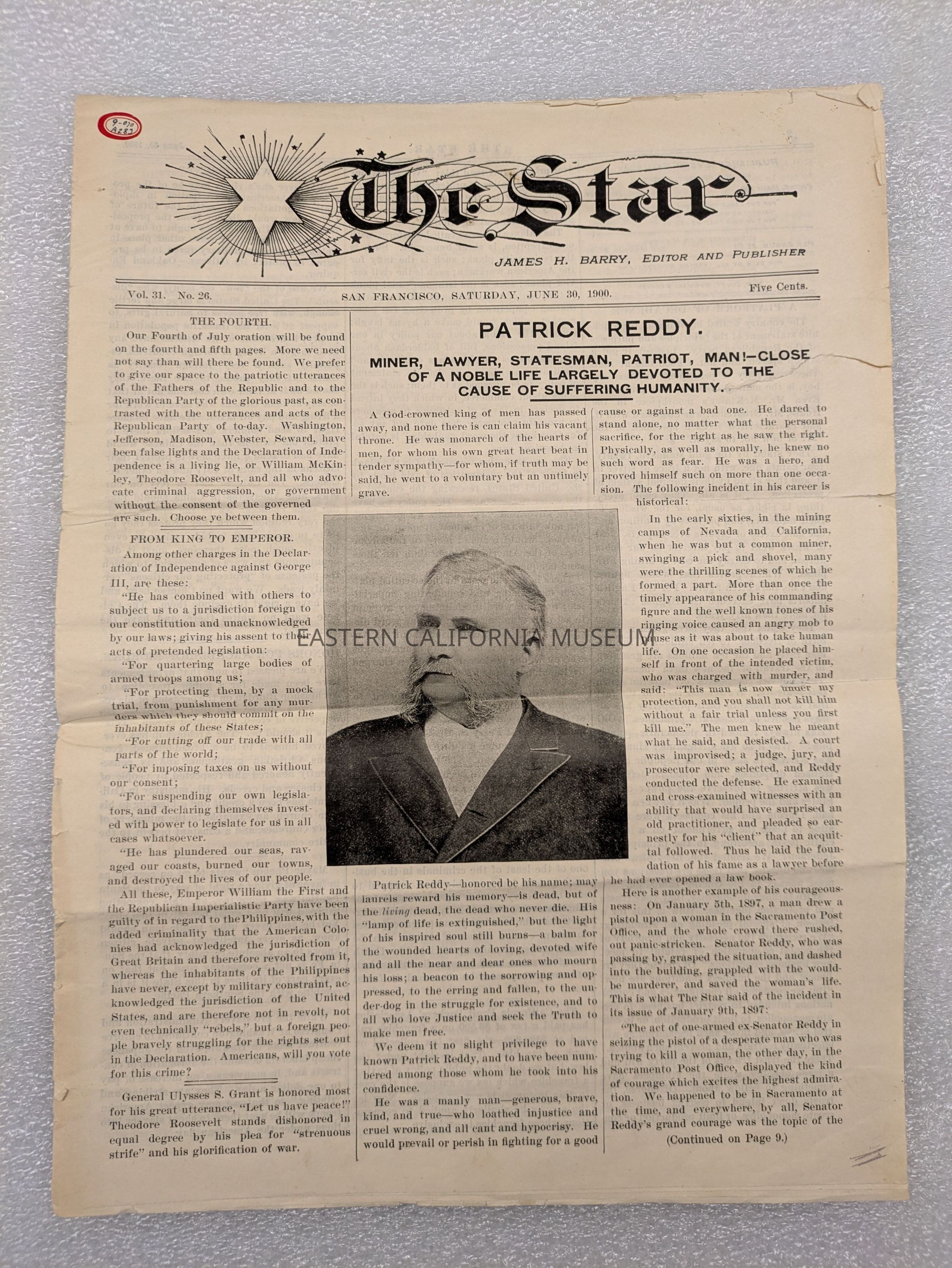 Newspaper: The Star, Vol. 31, No. 26, June 30, 1900. Published in San Francisco, California.
