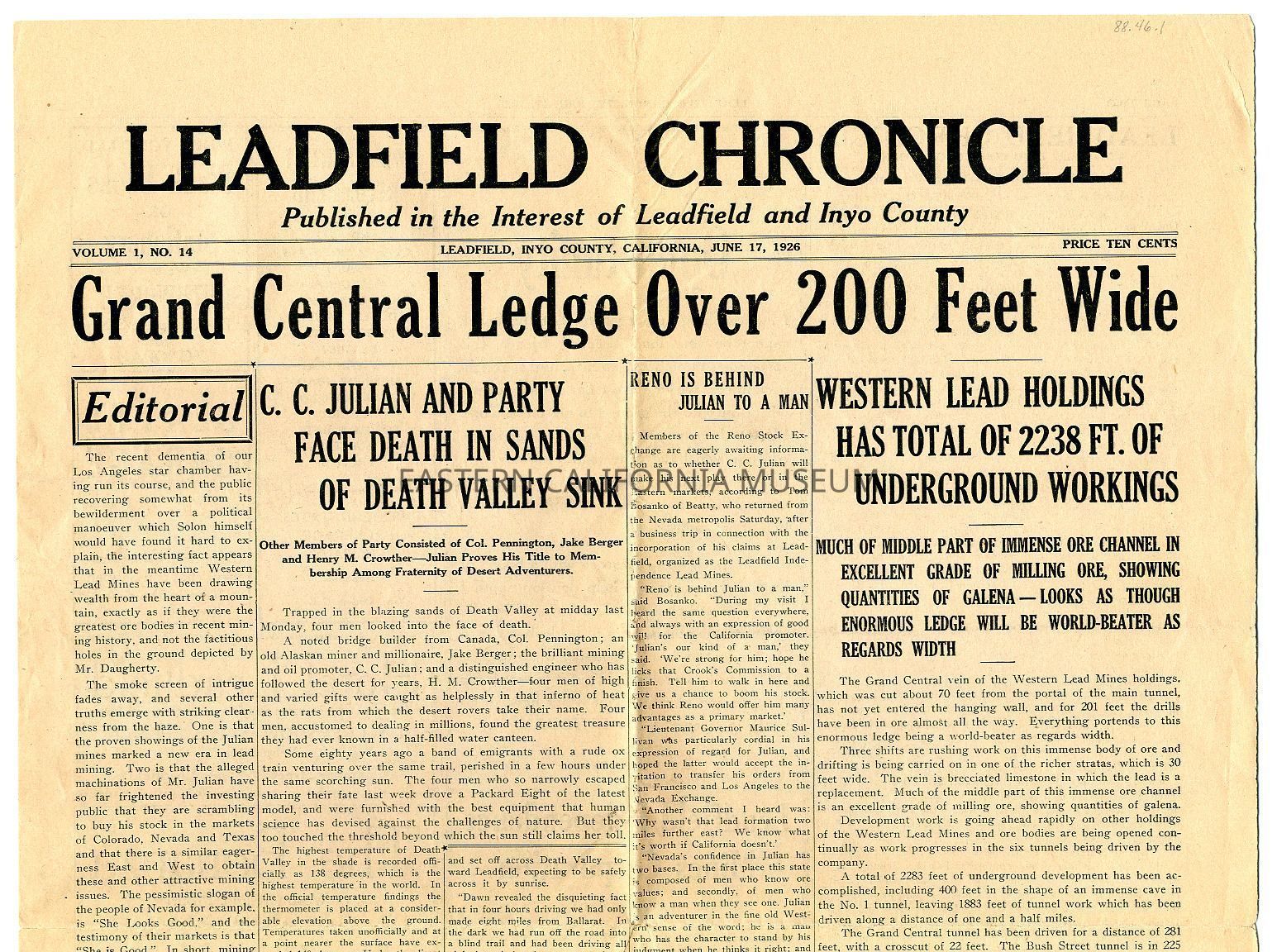 Newspaper: Leadfield Chronicle, Vol. 1, No. 14, June 17, 1926.Collection
