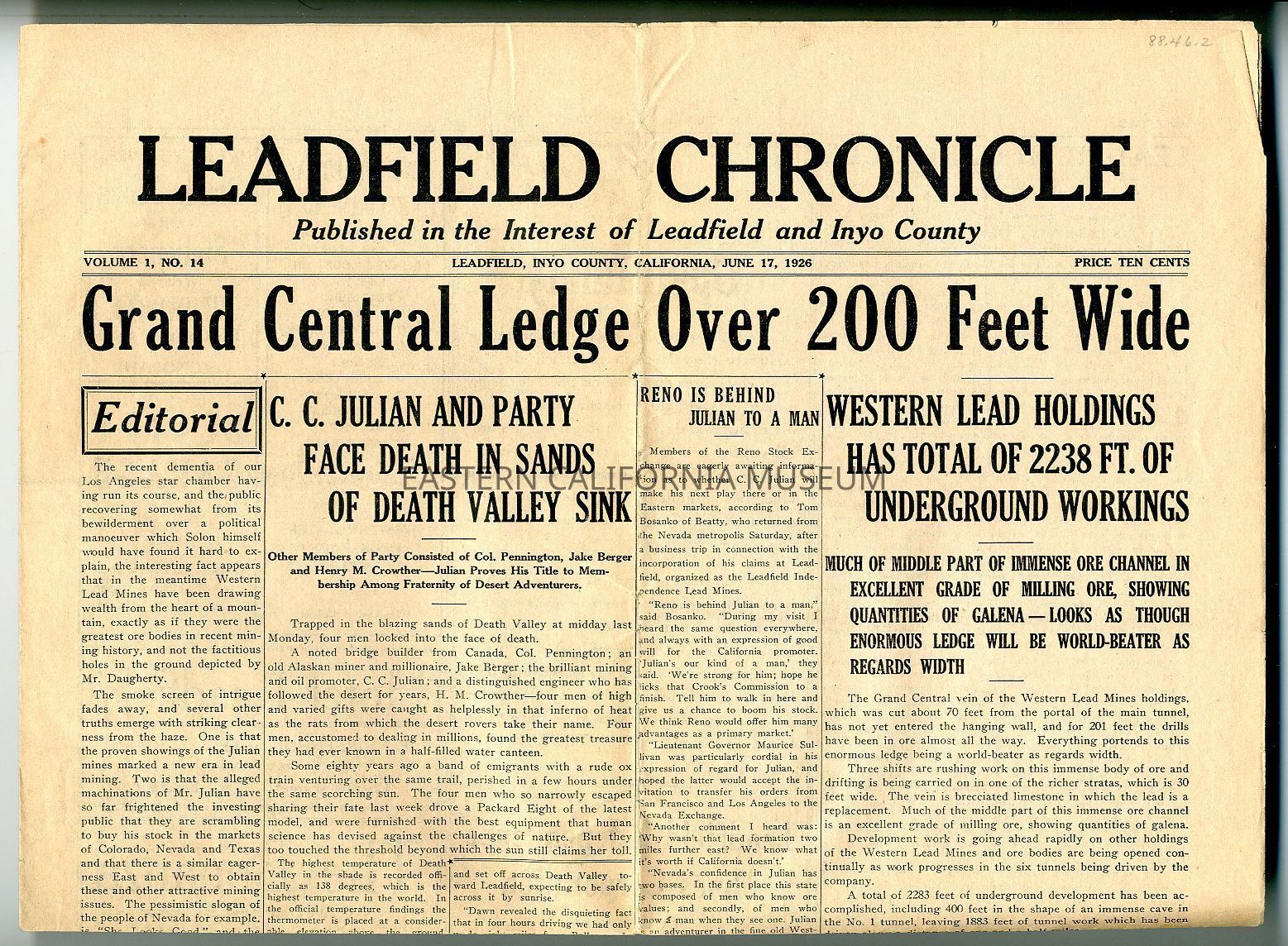 Newspaper: Leadfield Chronicle, Vol. 1, No. 14, June 17, 1926.Collection