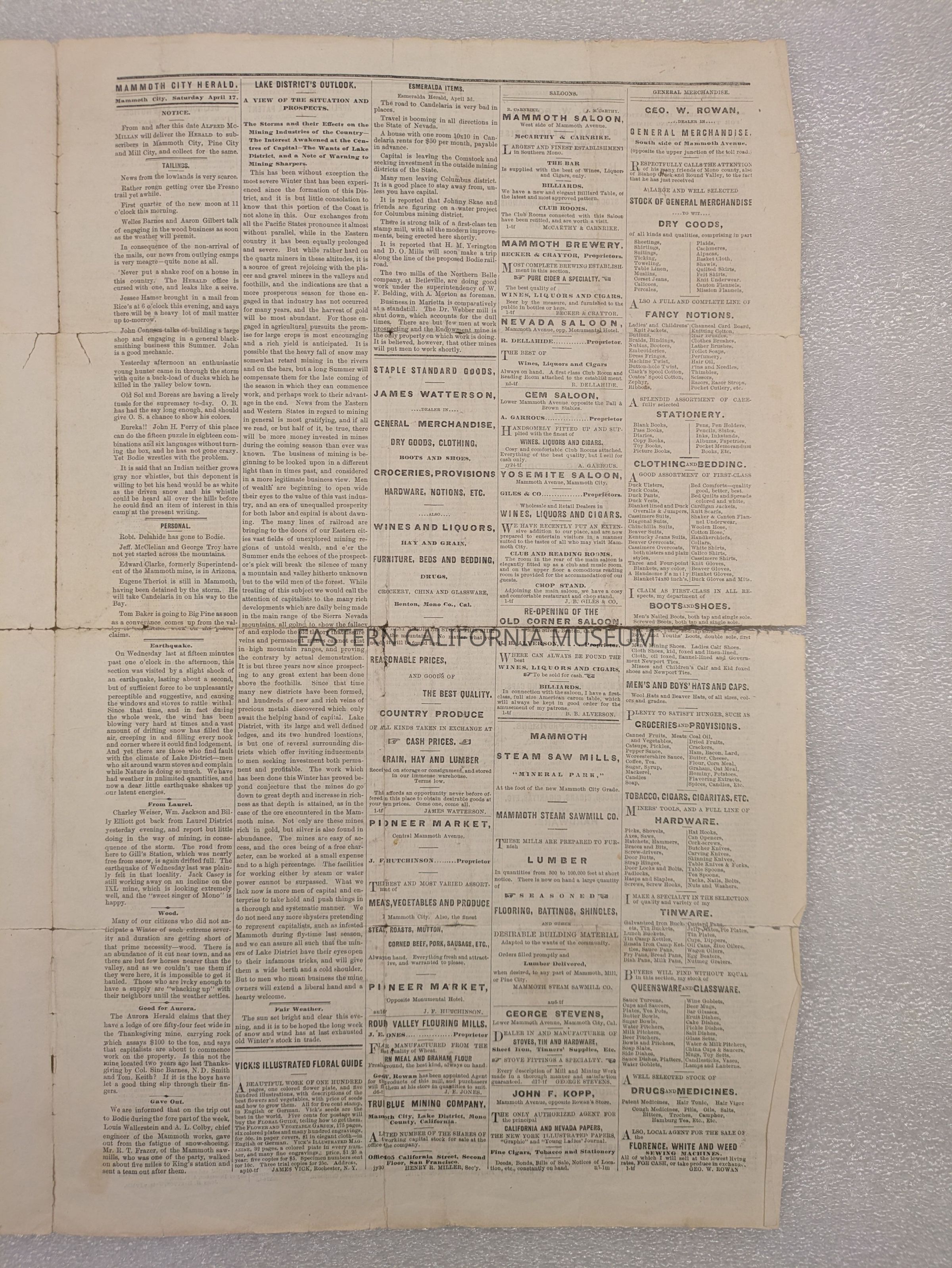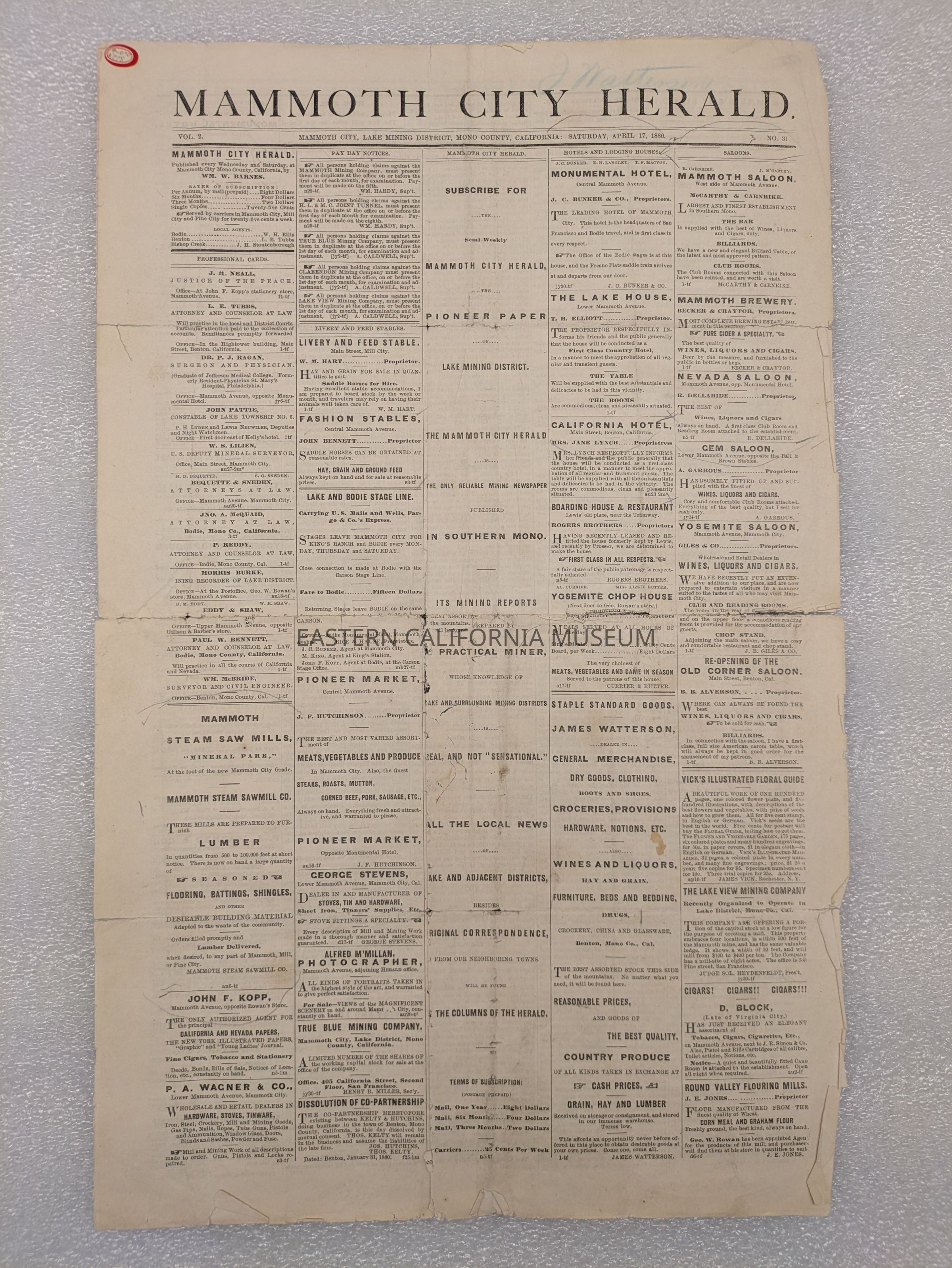 Newspaper: Mammoth City Herald, Vol. 2, No. 31, April 17, 1880.Collection