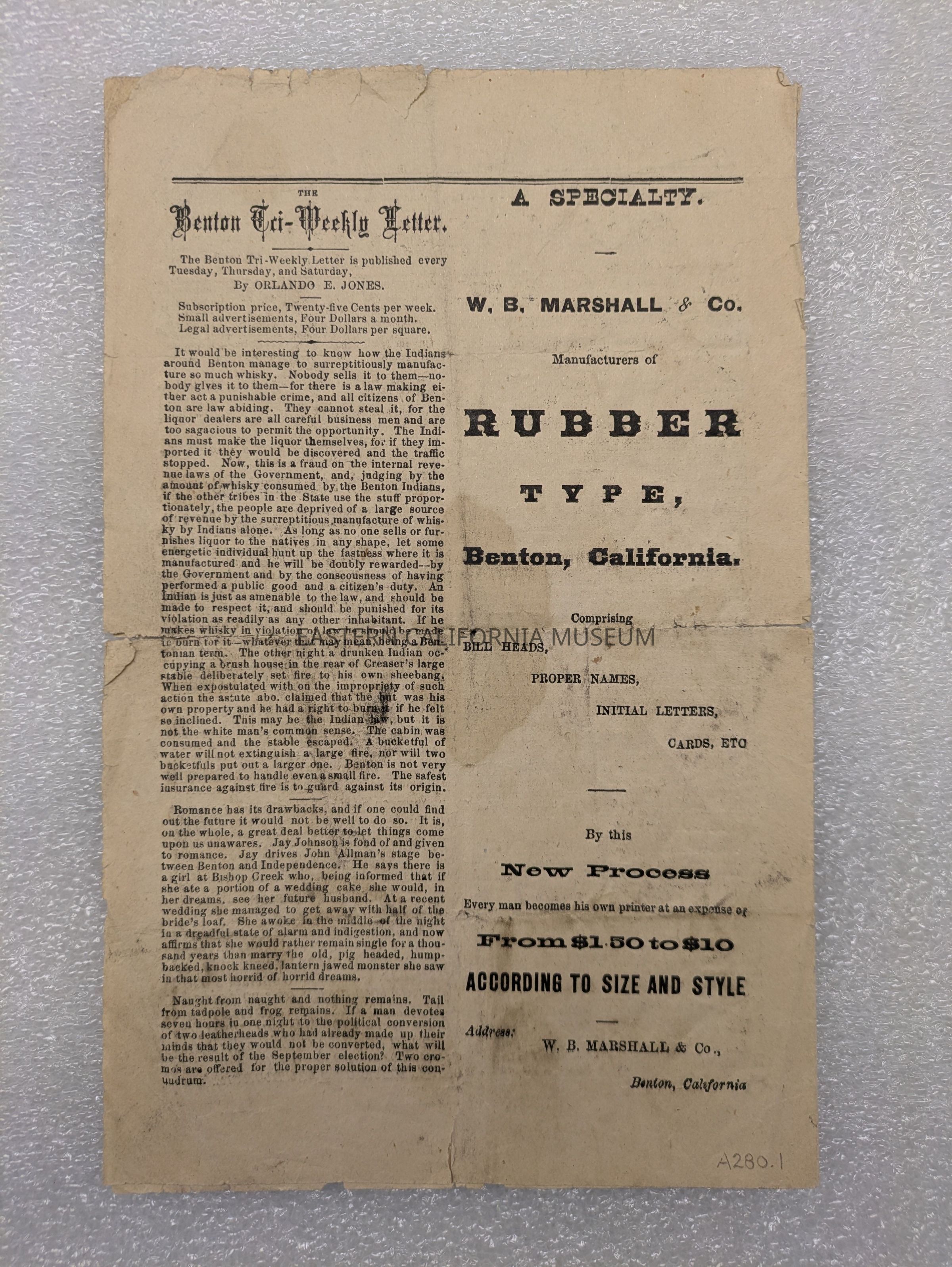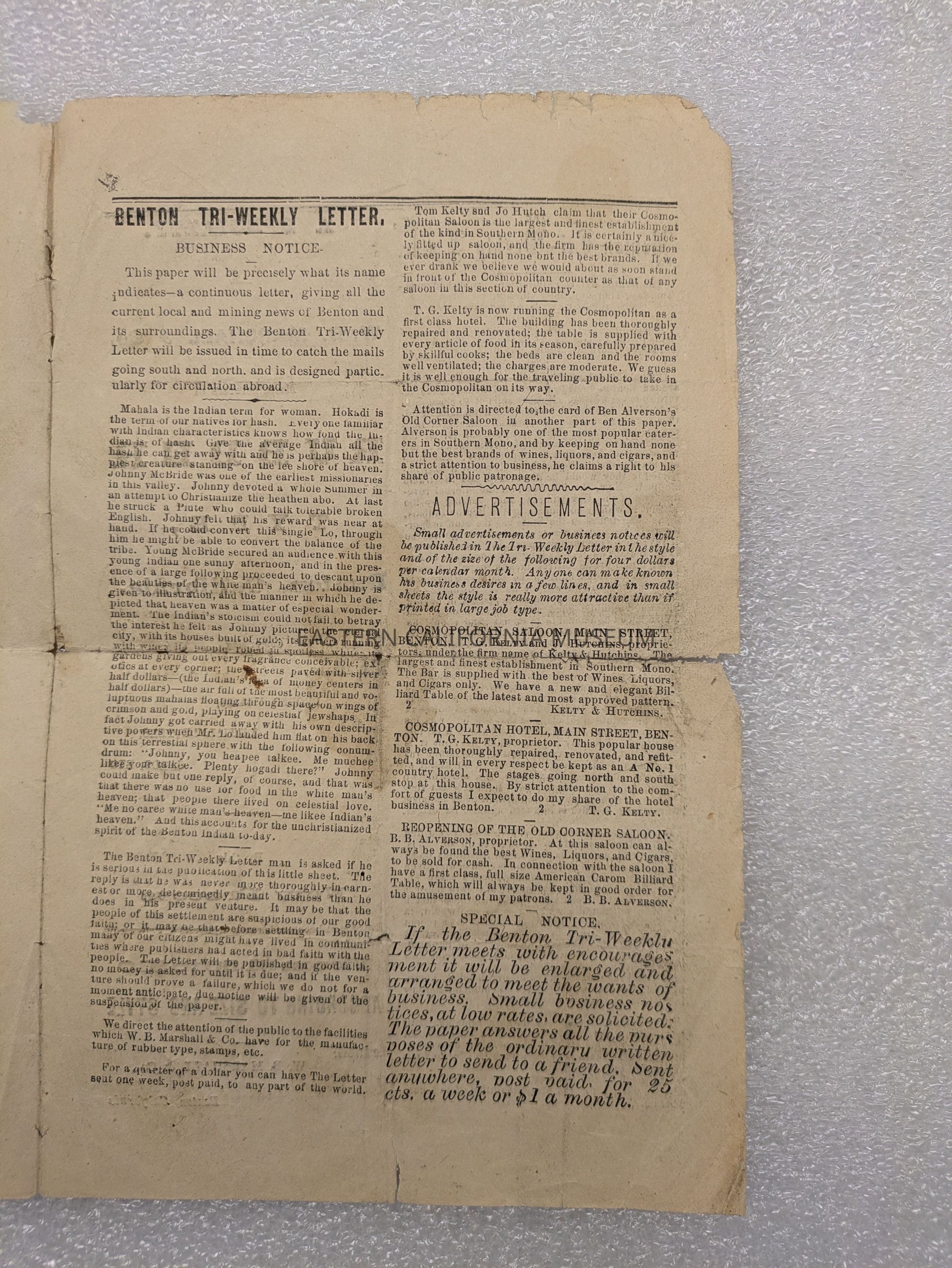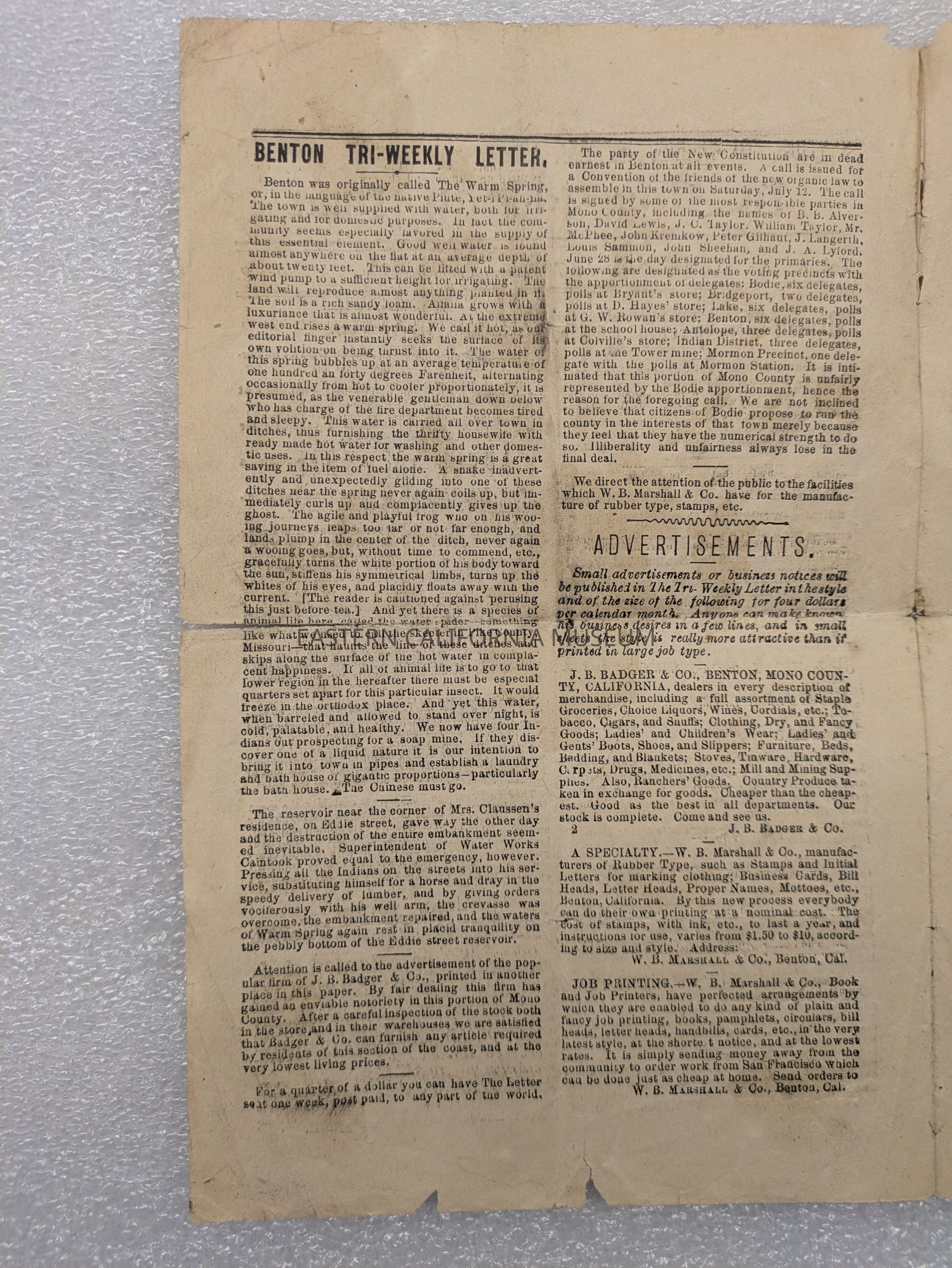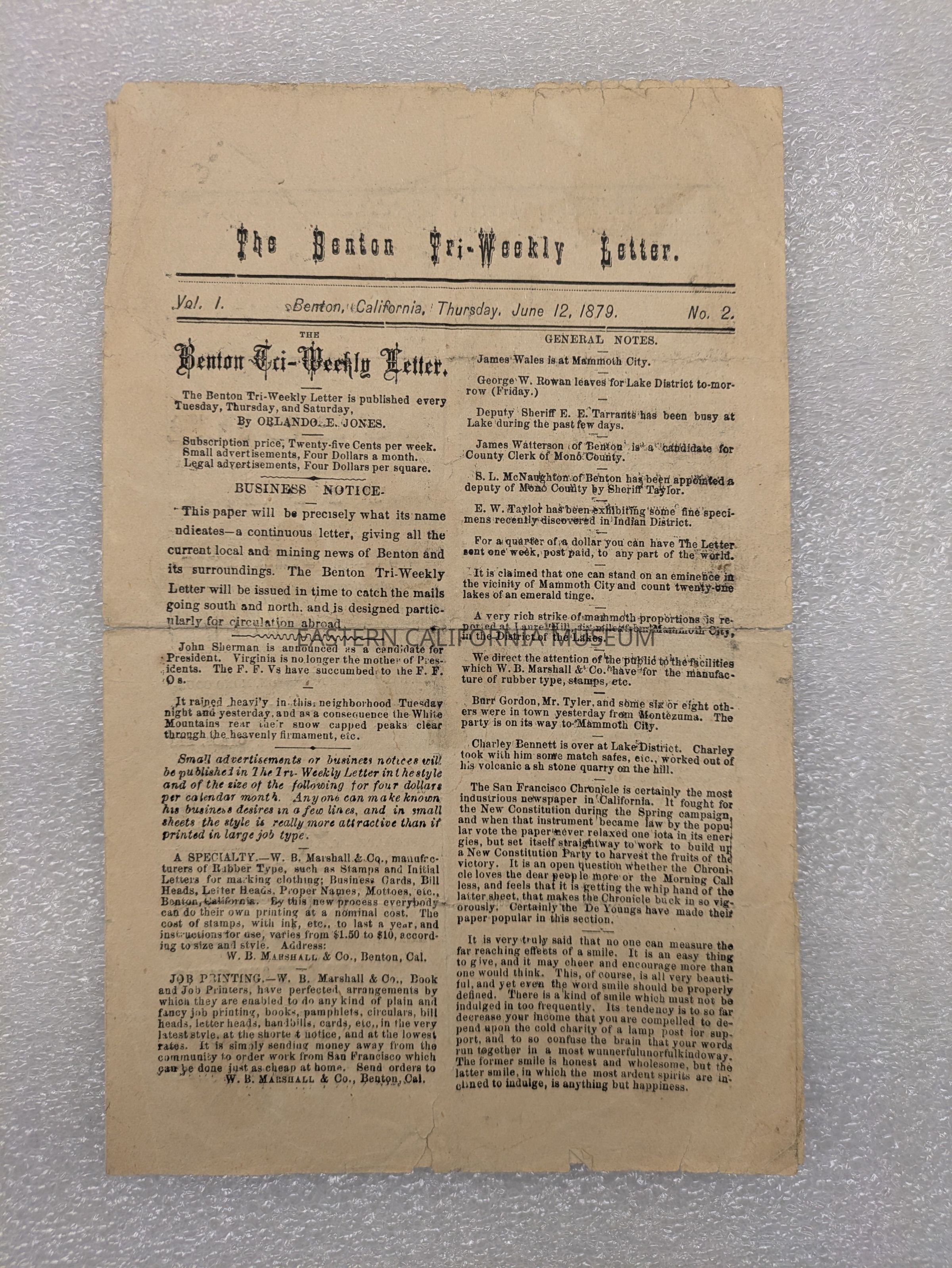 Newspaper: The Benton Tri-Weekly Letter, Vol. 1, No. 2, June 12, 1879.Collection