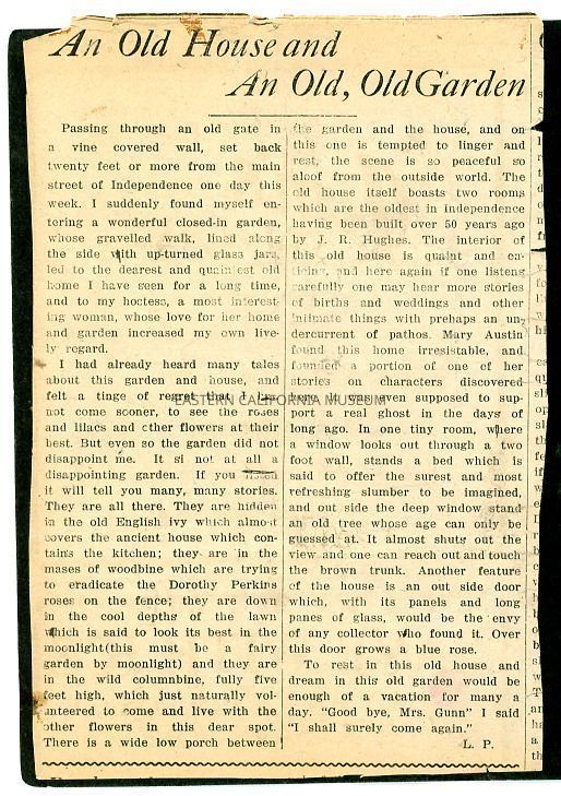 A1831.3.39c: Newspaper clipping titled, "An Old House and an Old, Old Garden." The author's initials are L.P., which may stand for Louise Parcher. It is about the garden and history of Edwards House in Independence.Collection