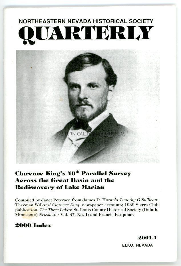 The main article is titled, "Clarence King's 40th Parallel Survey Across the Great Basin and the Rediscovery of Lake Marian," and was compiled by Janet Petersen.Collection
