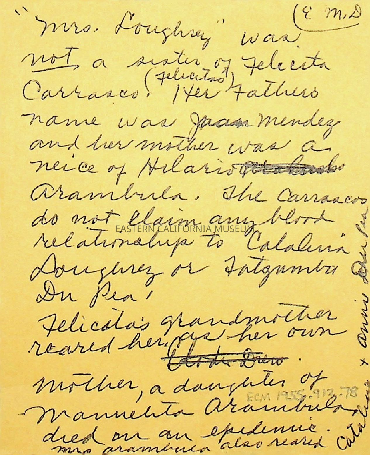 Handwritten single sided note by Elizabeth L. Mecham regarding Mrs. Loughrey's family.