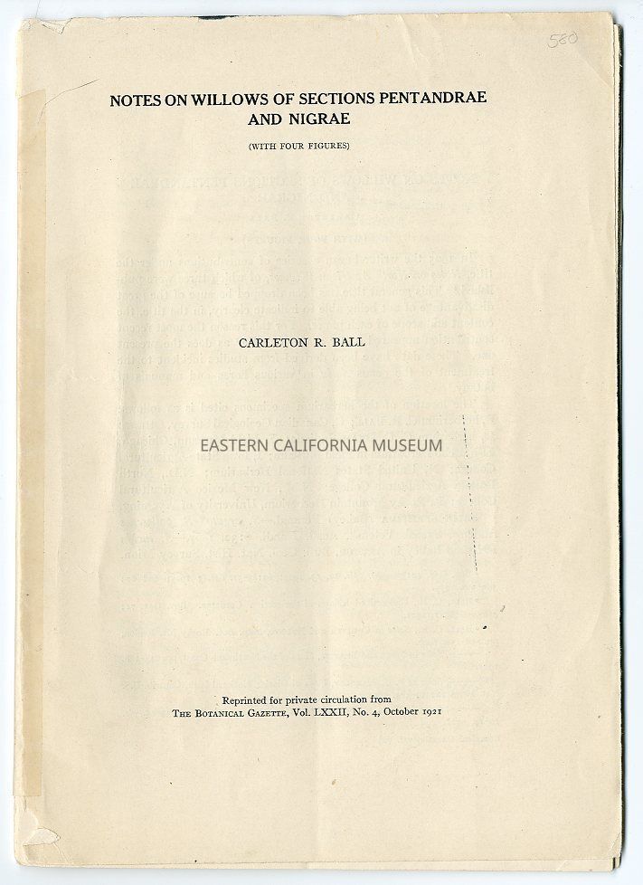 "Notes on Willows of Sections Pentandrae and Nigrae" has detached front and back pages.