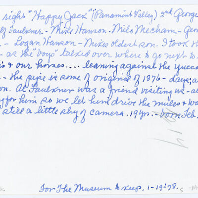 The photo is also mentioned in letter 1955.912.67 where Elizabeth Mecham writes about the process/experience of rounding up and branding horses in more detail.Collection