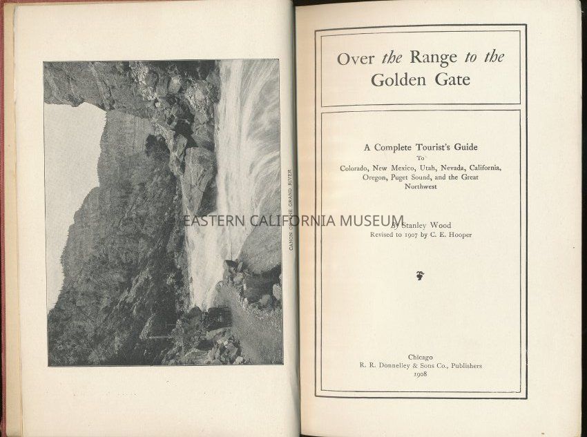 8 7/8" high x 6" wide x 1" deep; 342 pages; hardcover in red/burgandy cloth with gold lettering of first part of title and black letter of "to the Golden Gate" in upper half of page. No dust cover. Cover also has a black outline of mountains and a train going through themCollection