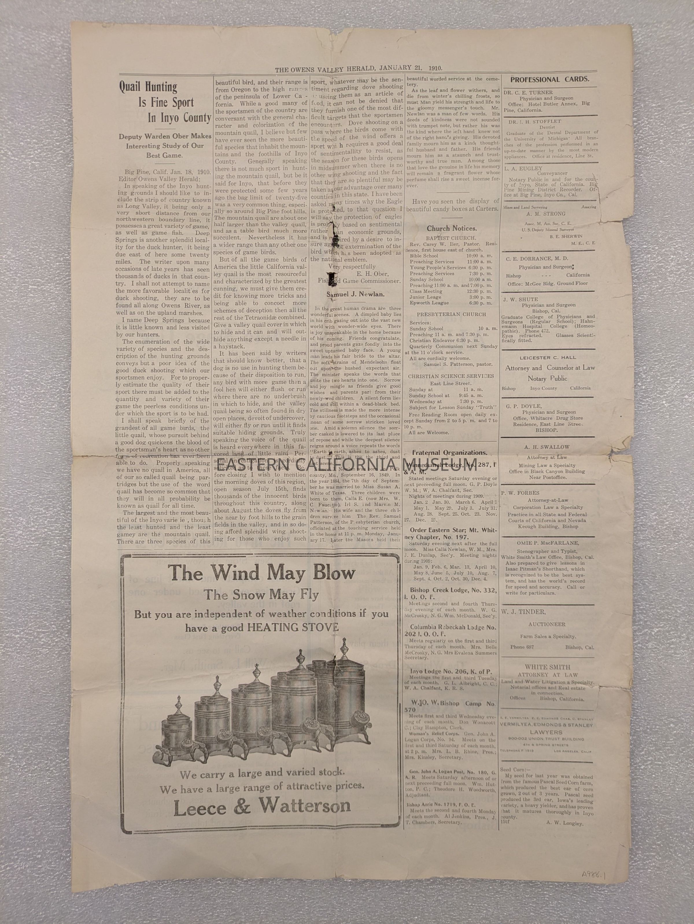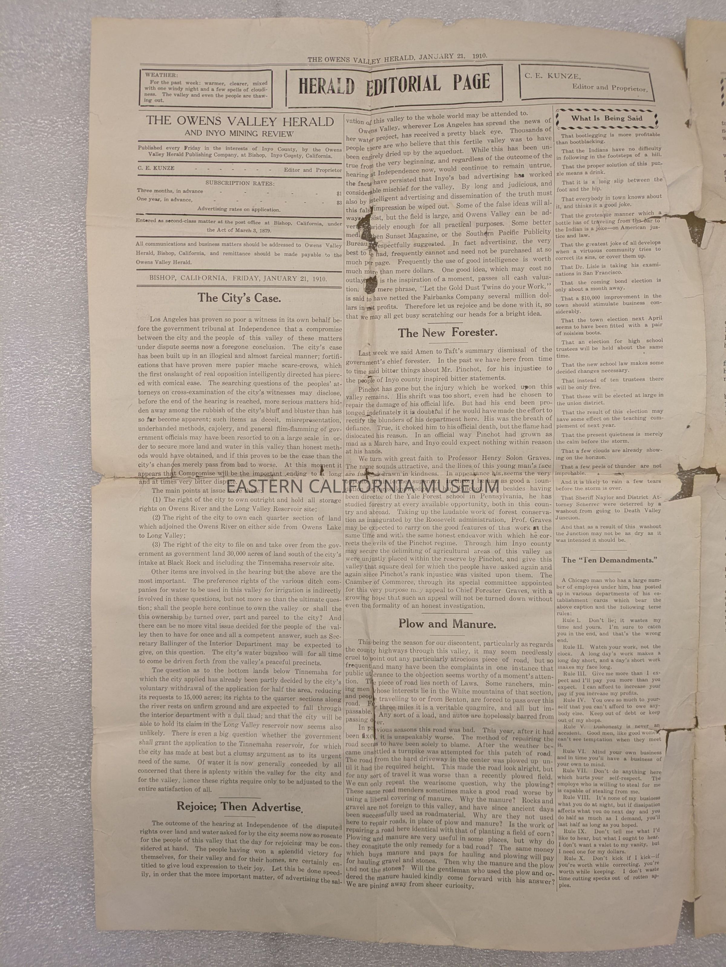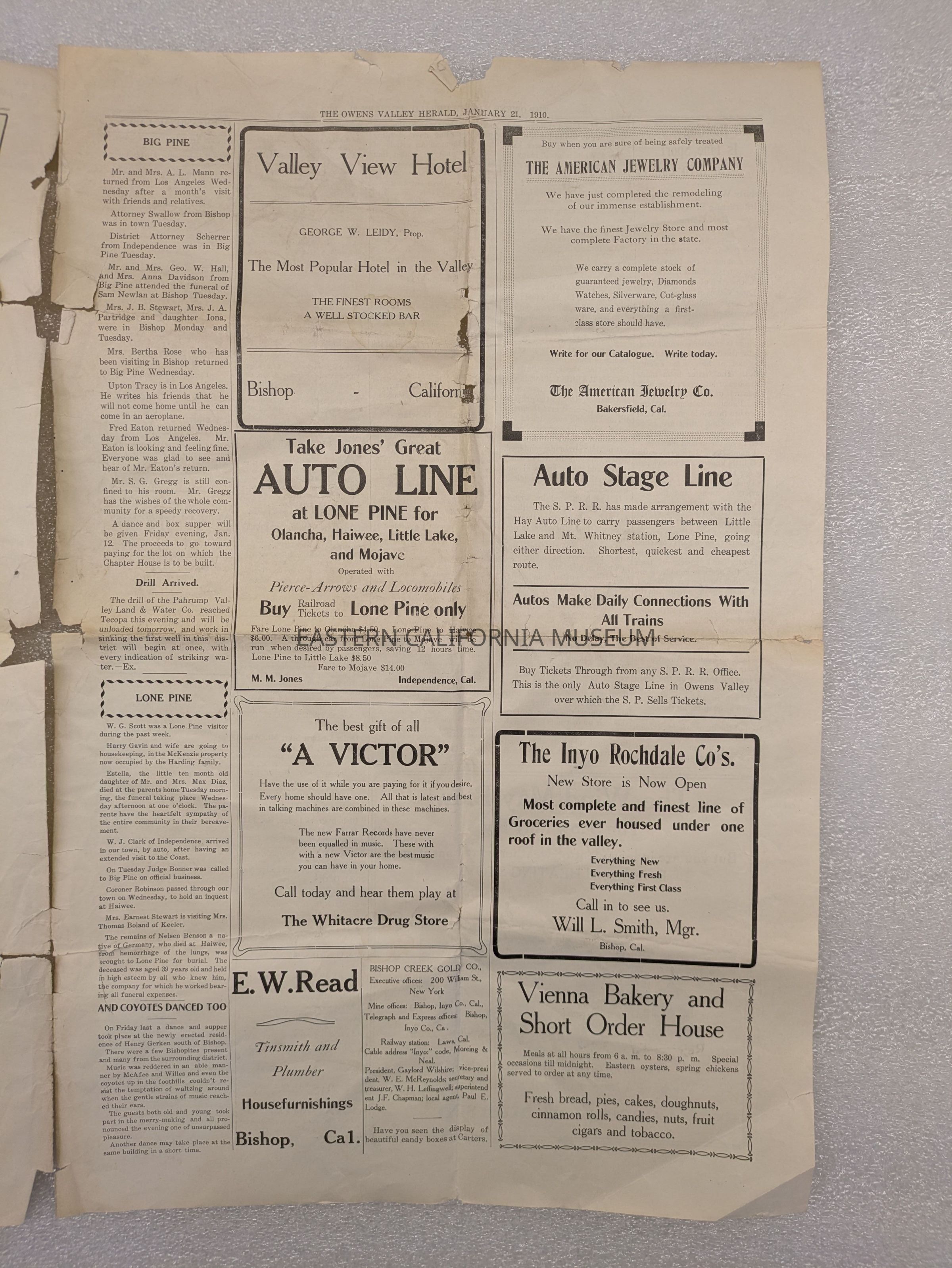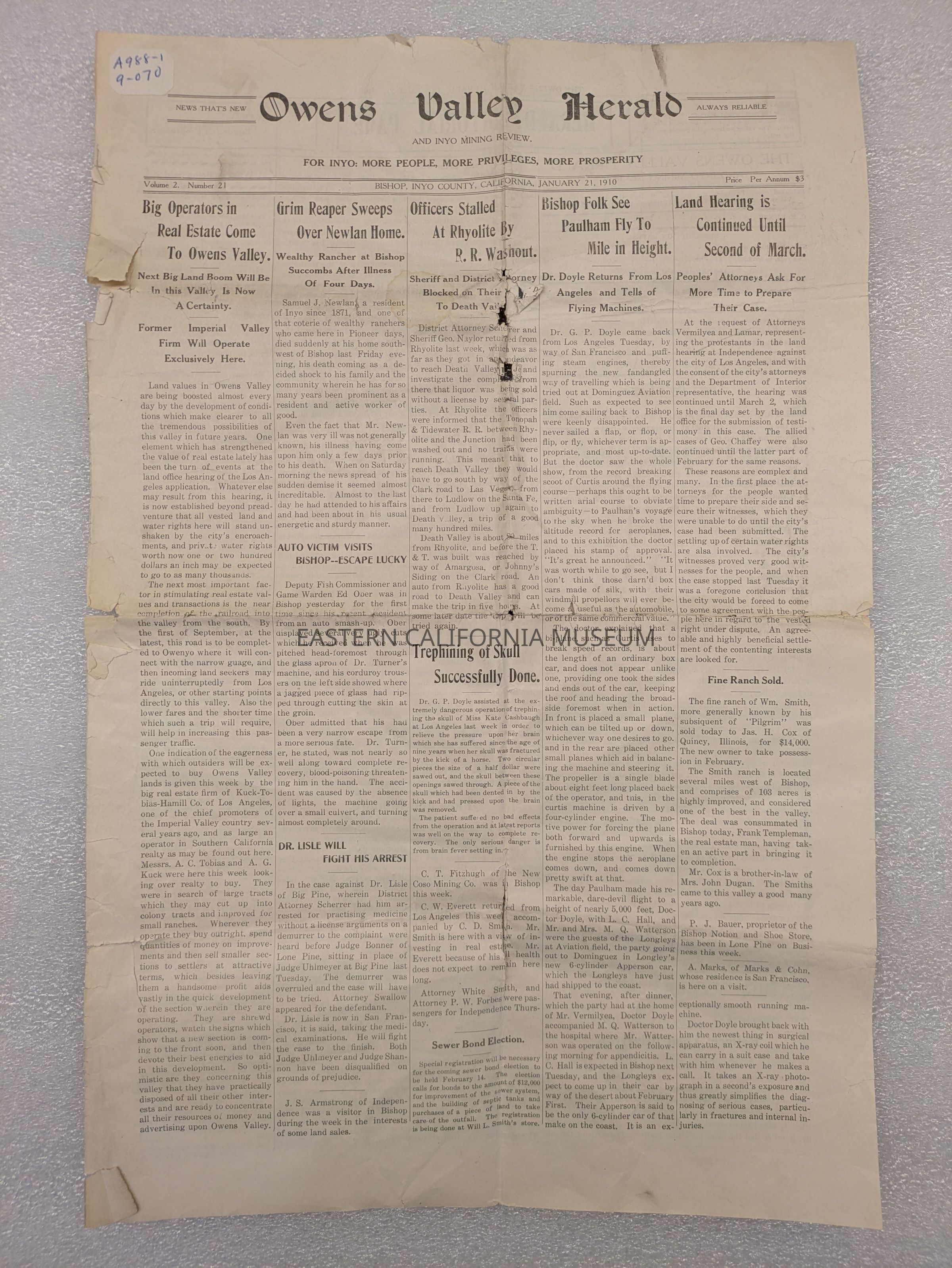 Newspaper: Owens Valley Herald, January 21, 1910.