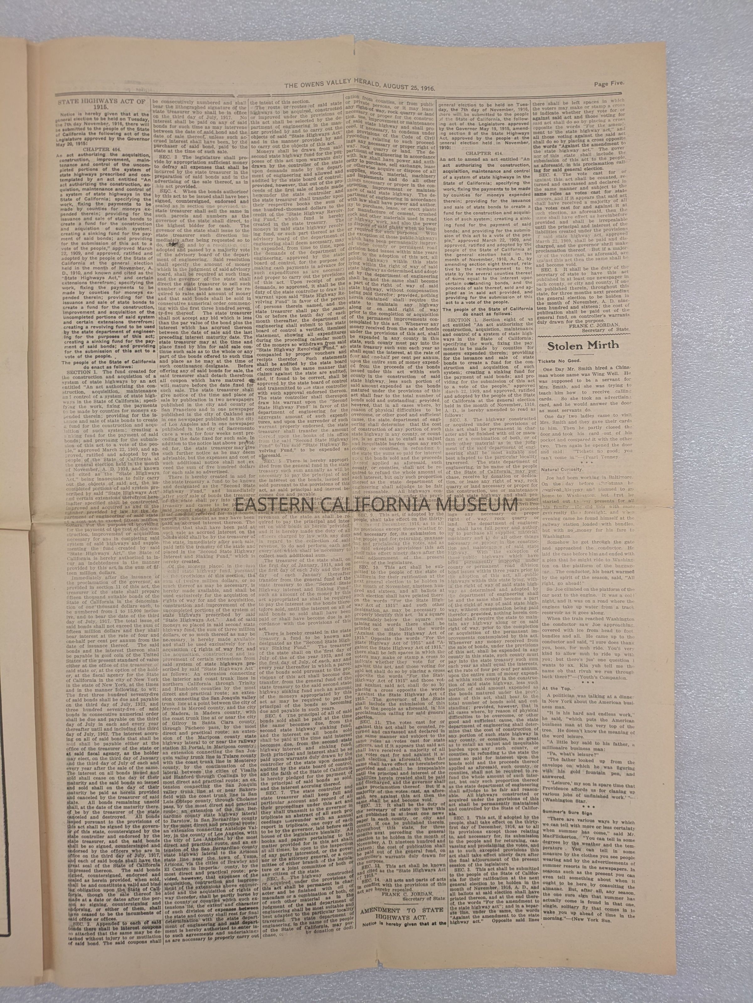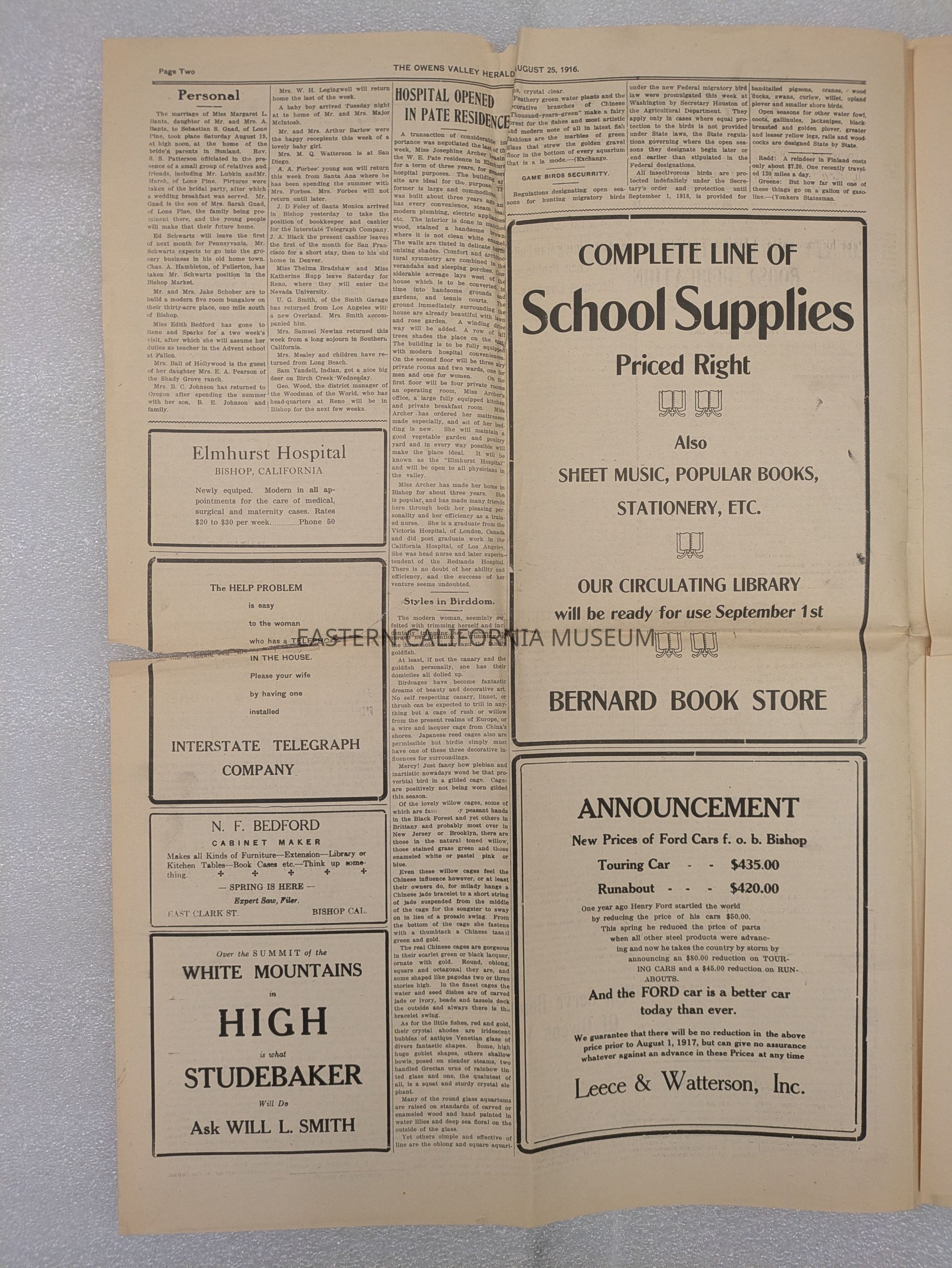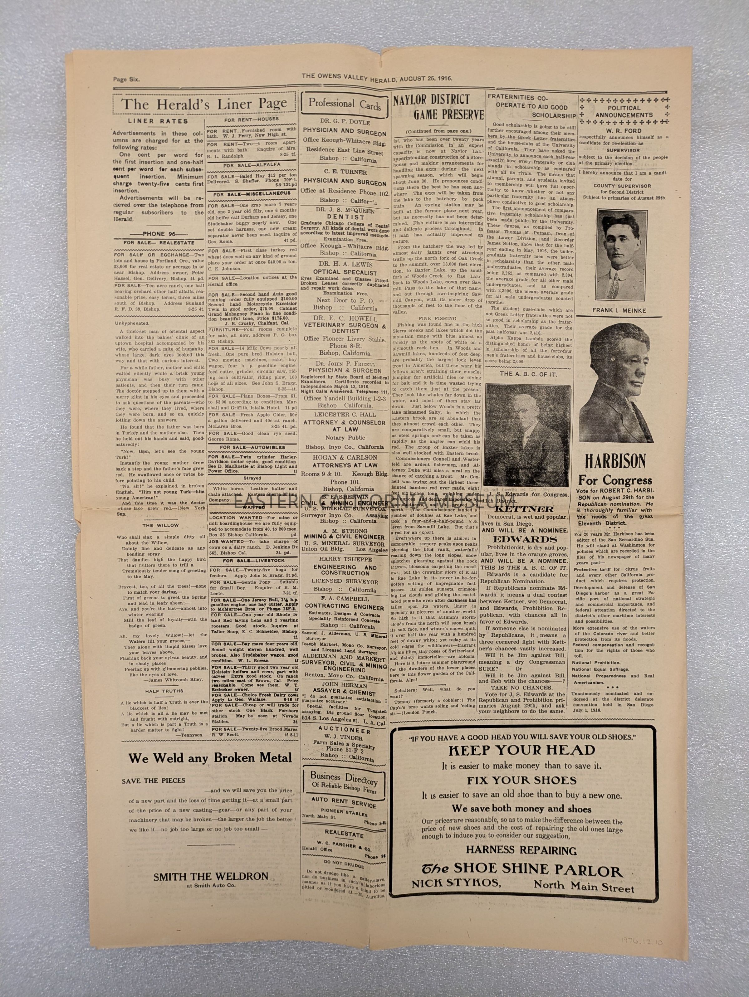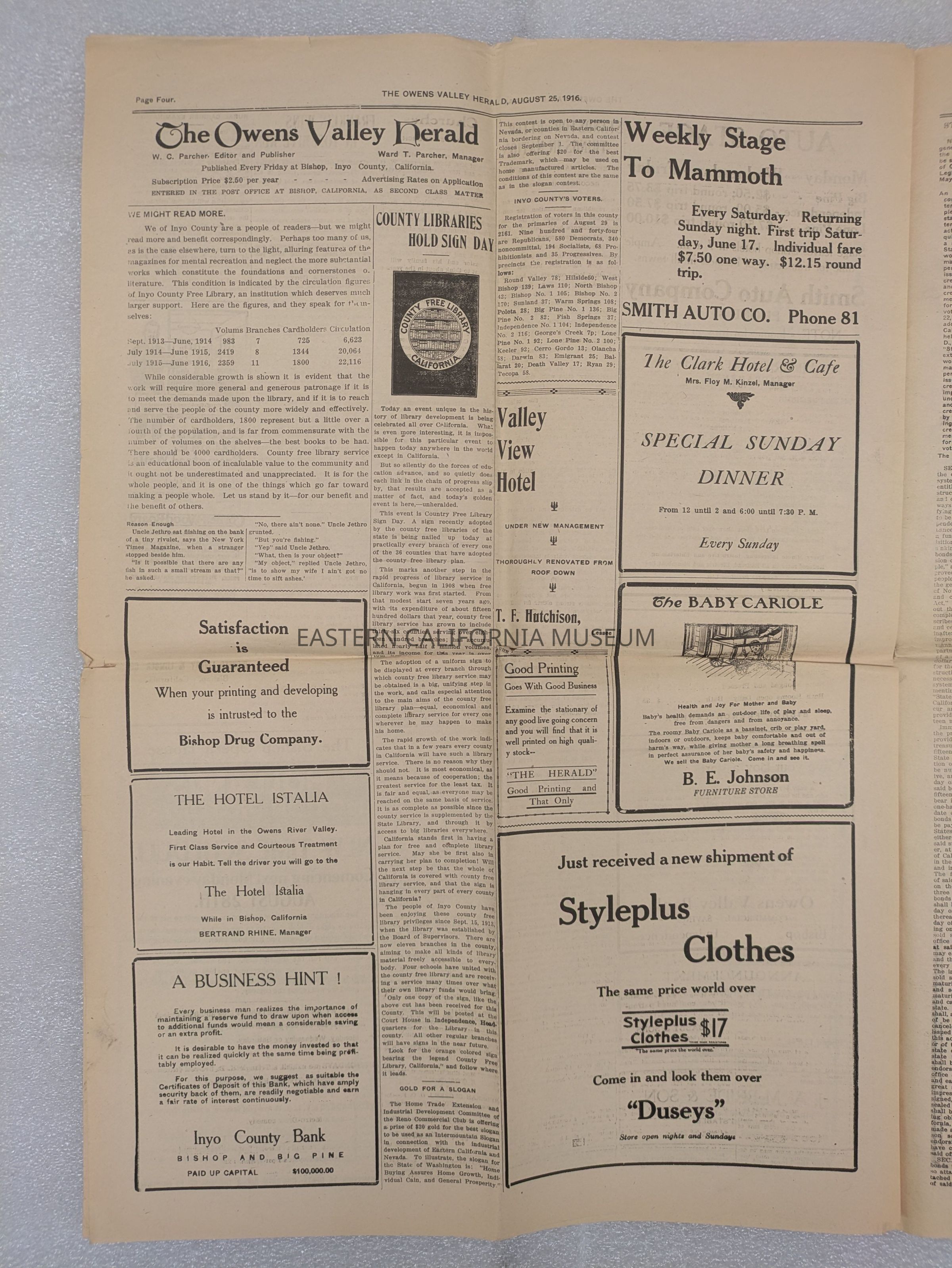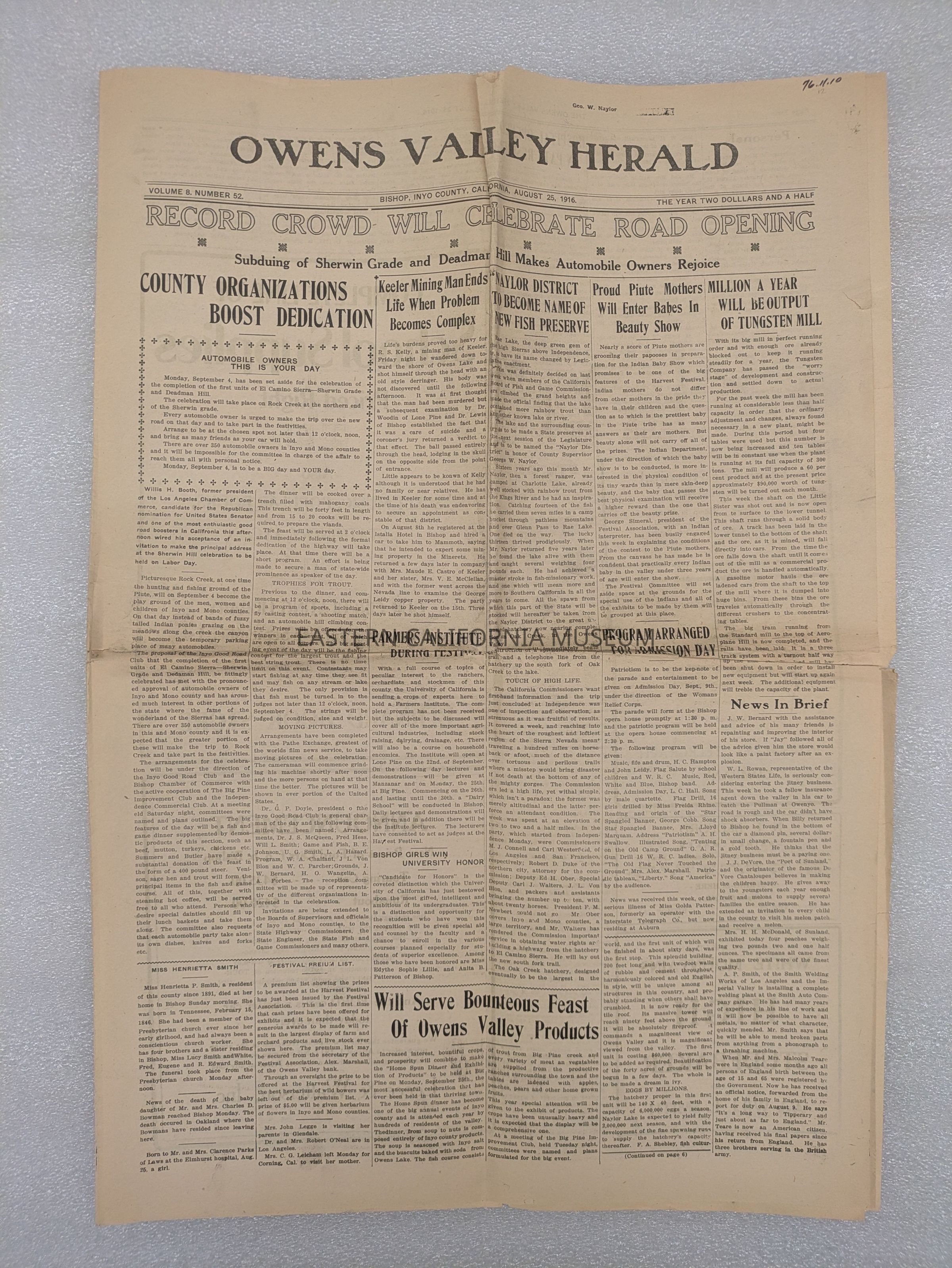 Newspaper: Owens Valley Herald, Vol. 8, No. 52, August 25, 1916.Collection