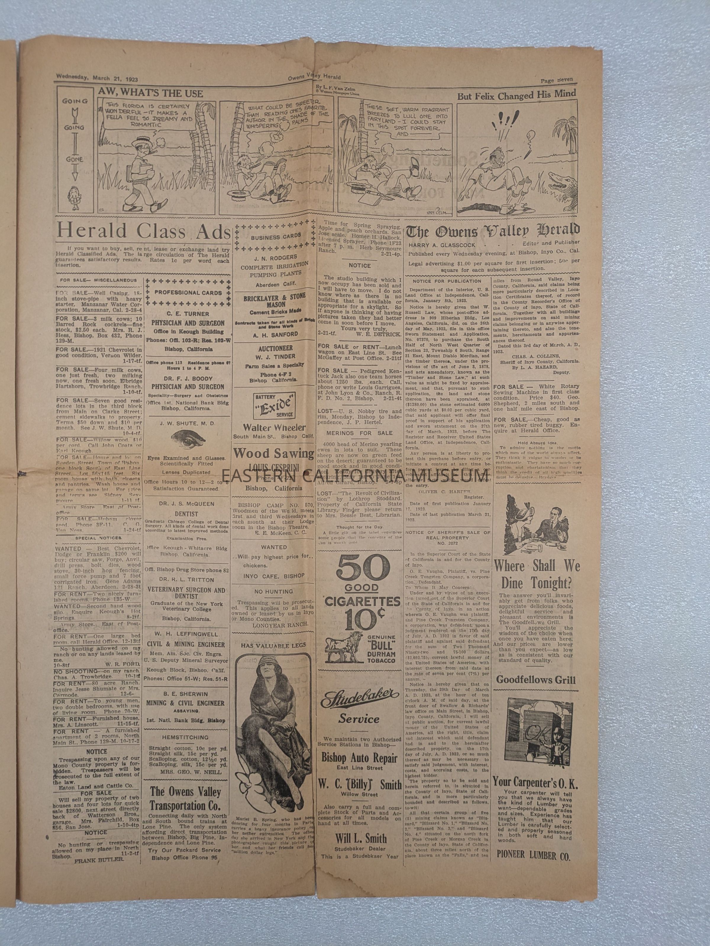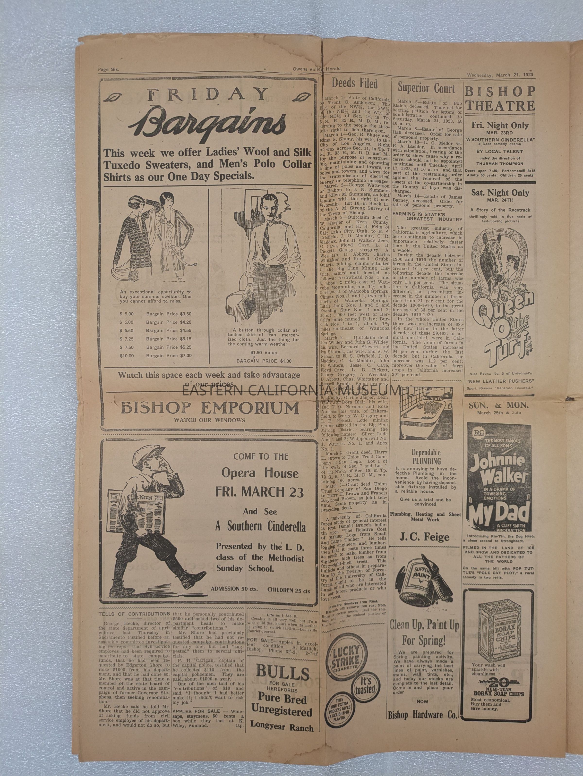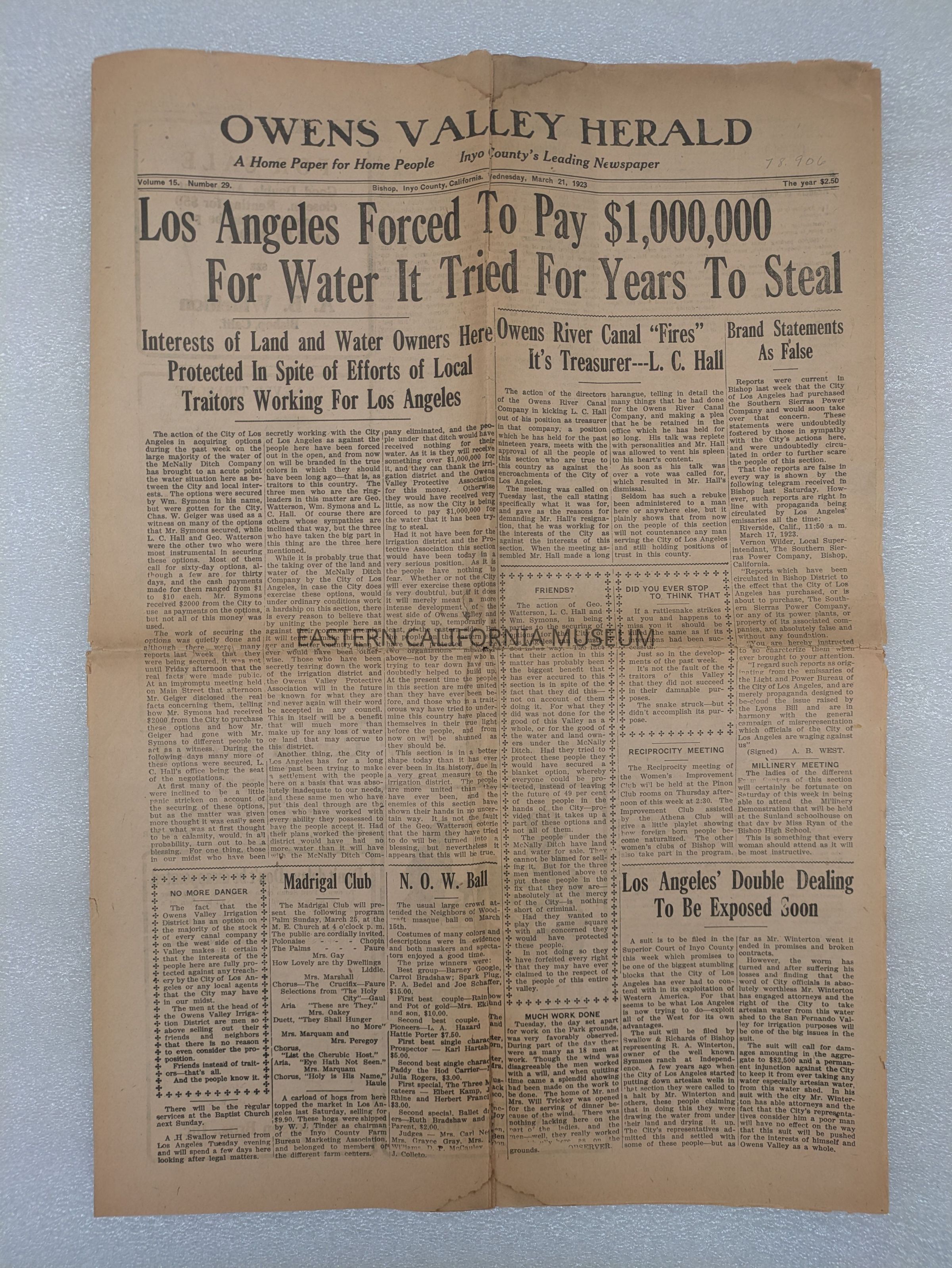 Newspaper: Owens Valley Herald, Vol. 15, No. 29, March 21, 1923.Publication Details