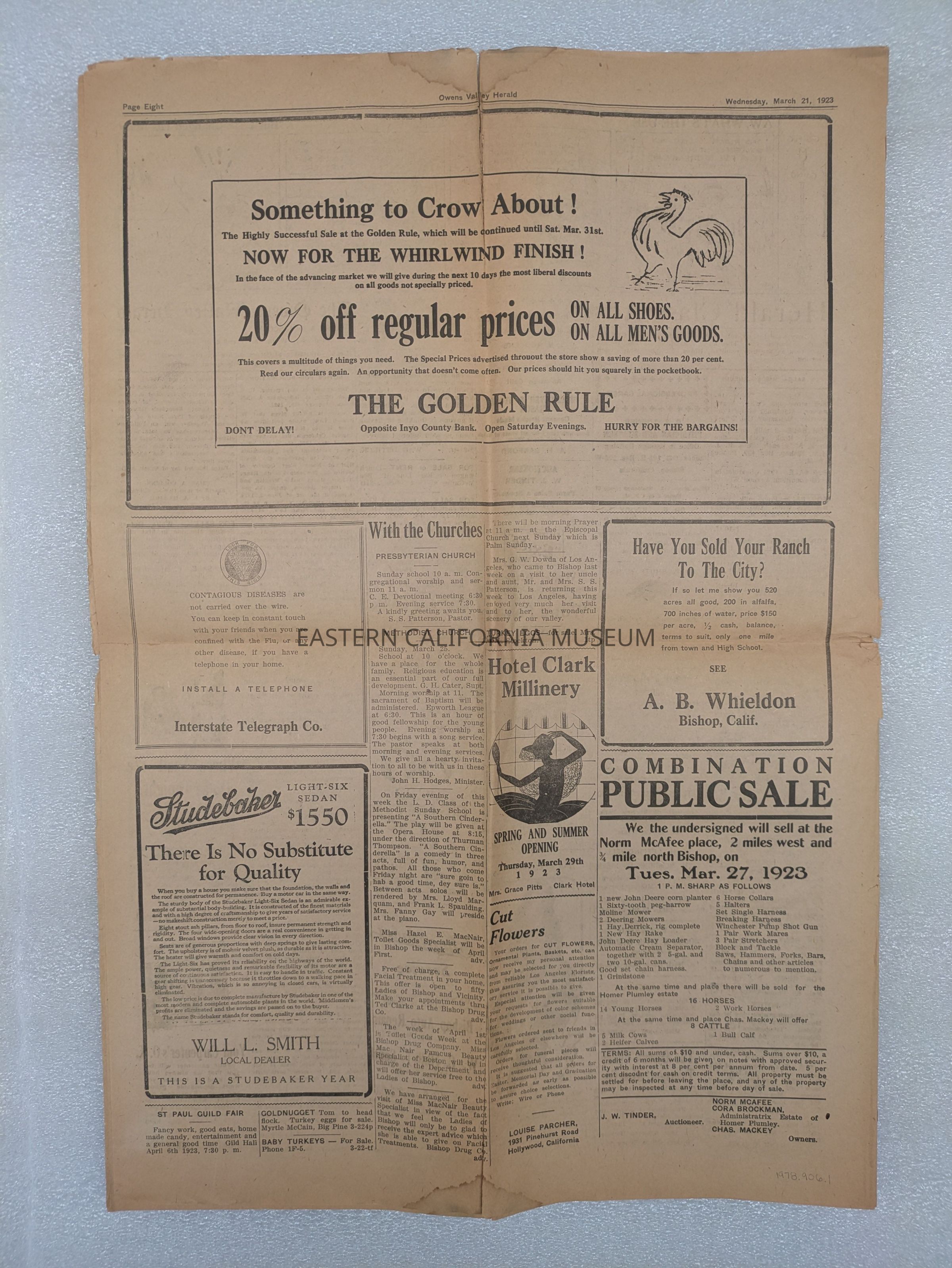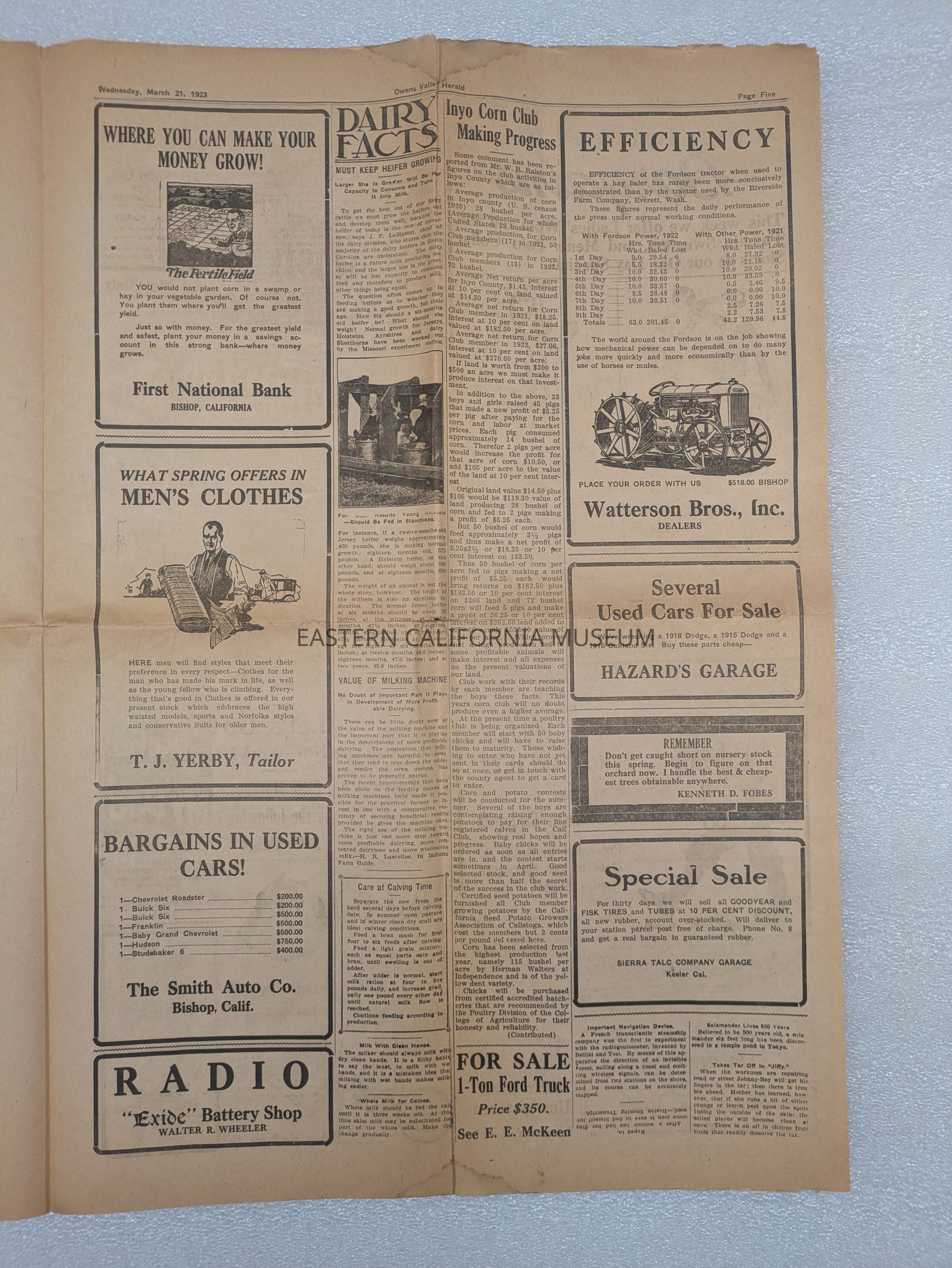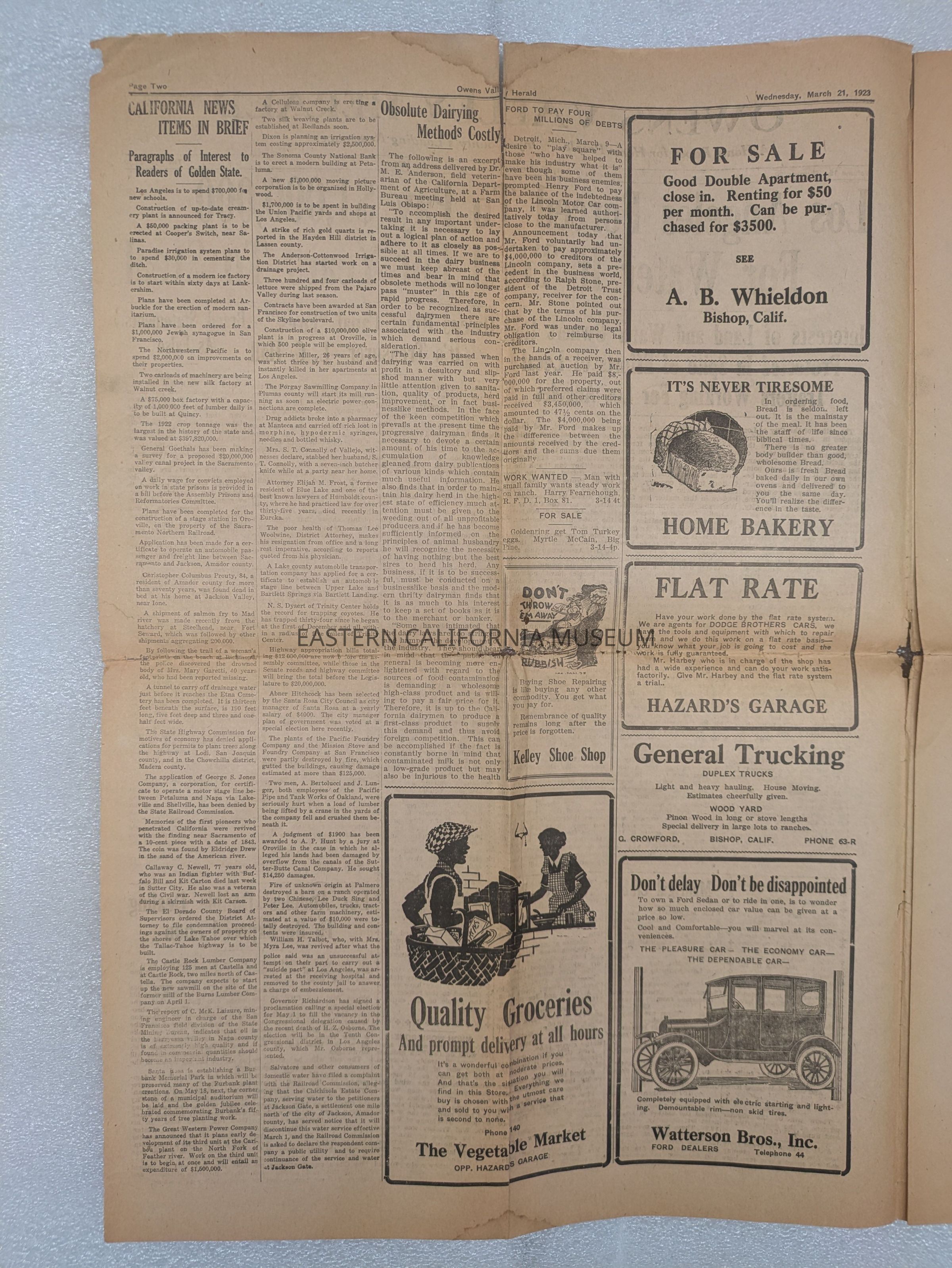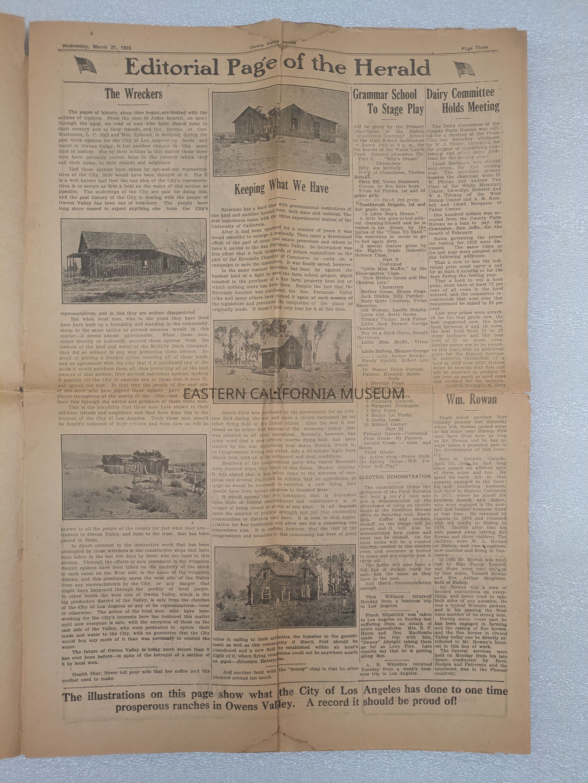 Newspaper: Owens Valley Herald, Vol. 15, No. 29, March 21, 1923.Publication Details