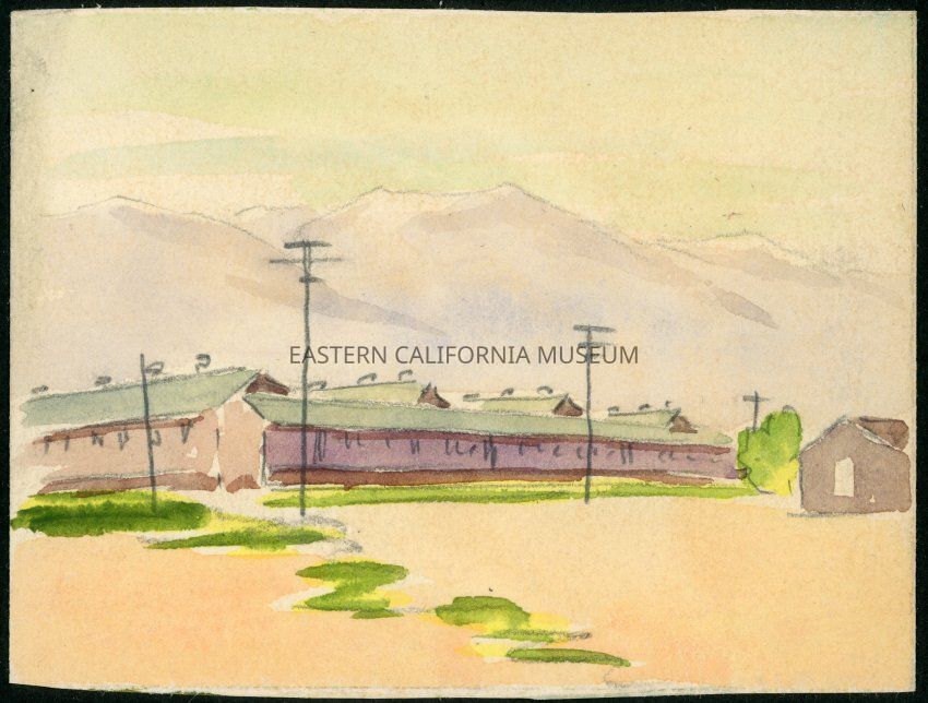 Watercolor painting of the of Manzanar War Relocation Center Hospital.Collection