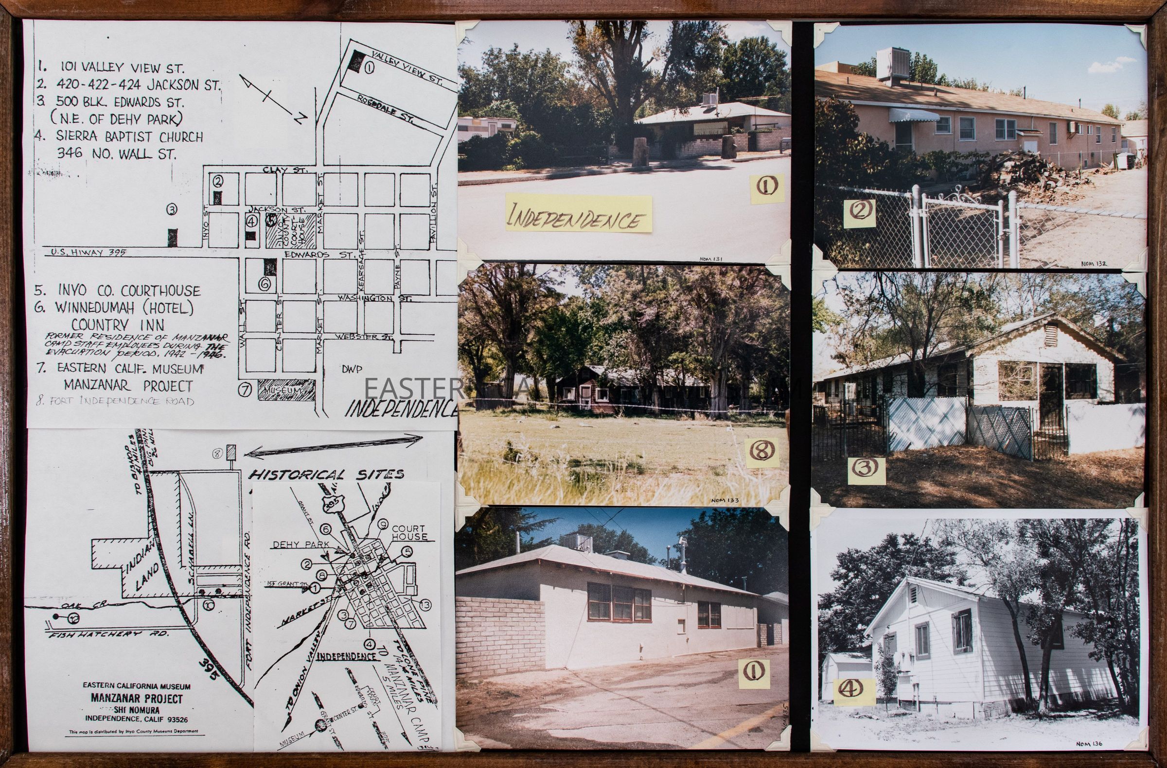 Panel about buildings from Manzanar War Relocation Center that were relocated to Independence after the closure of the camp.