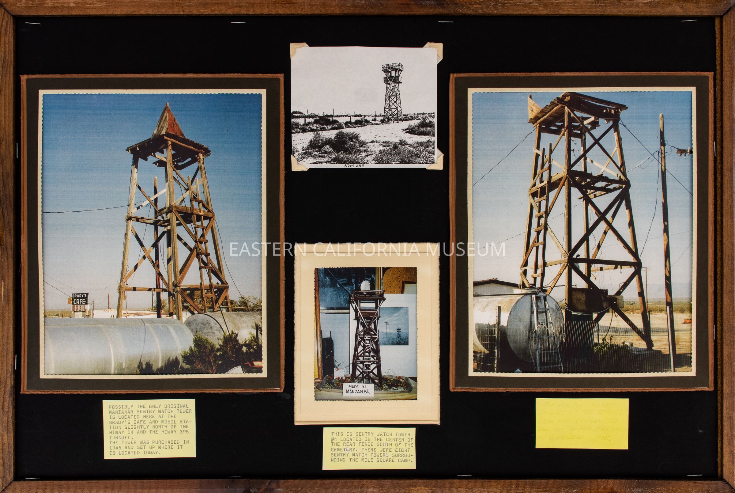 Panel related to guard or sentry watch towers at Manzanar War Relocation Center.