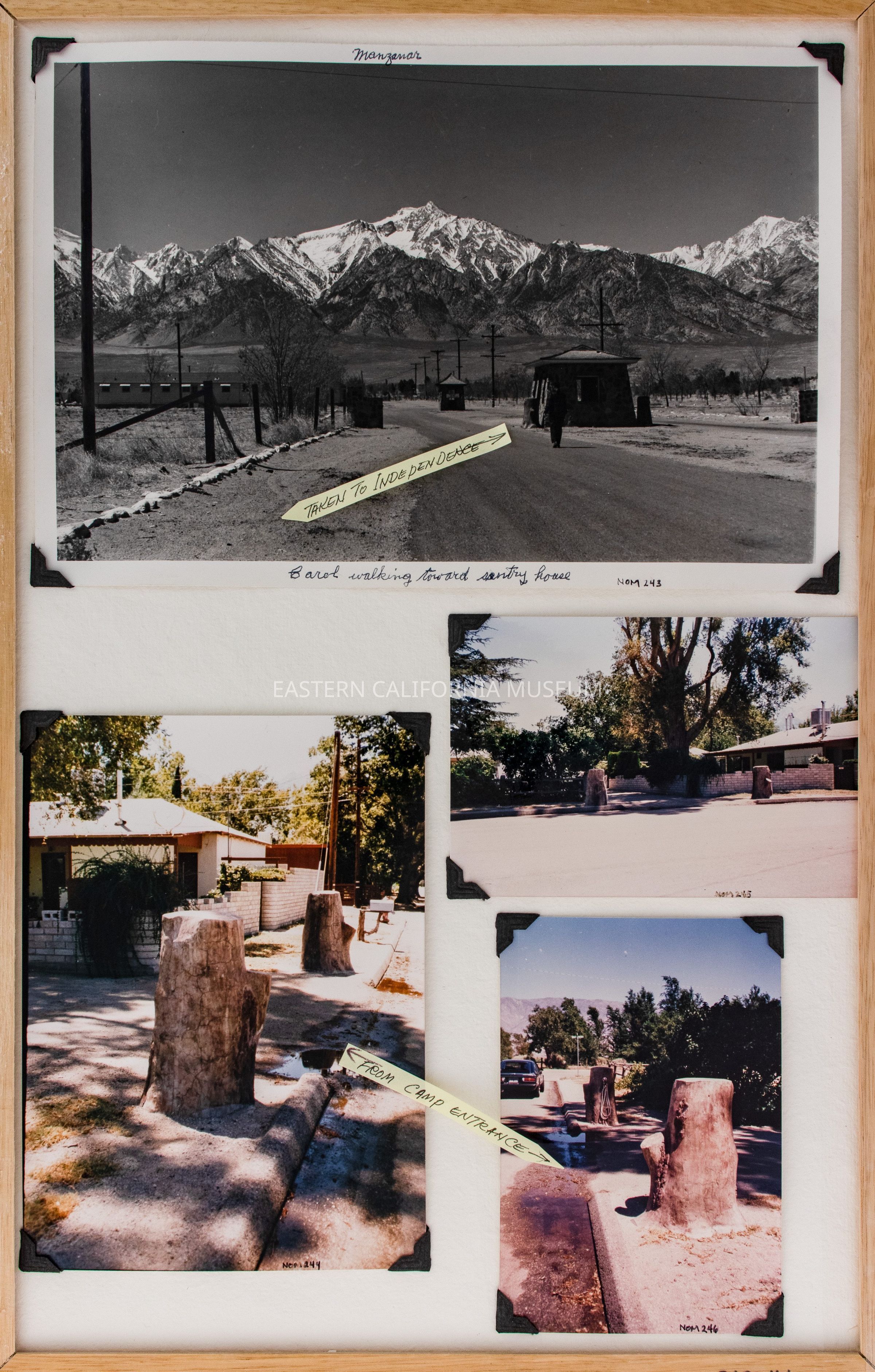Panel related to the entrance to Manzanar War Relocation Center. It is connected to panel 1994.80.115 via hinges.