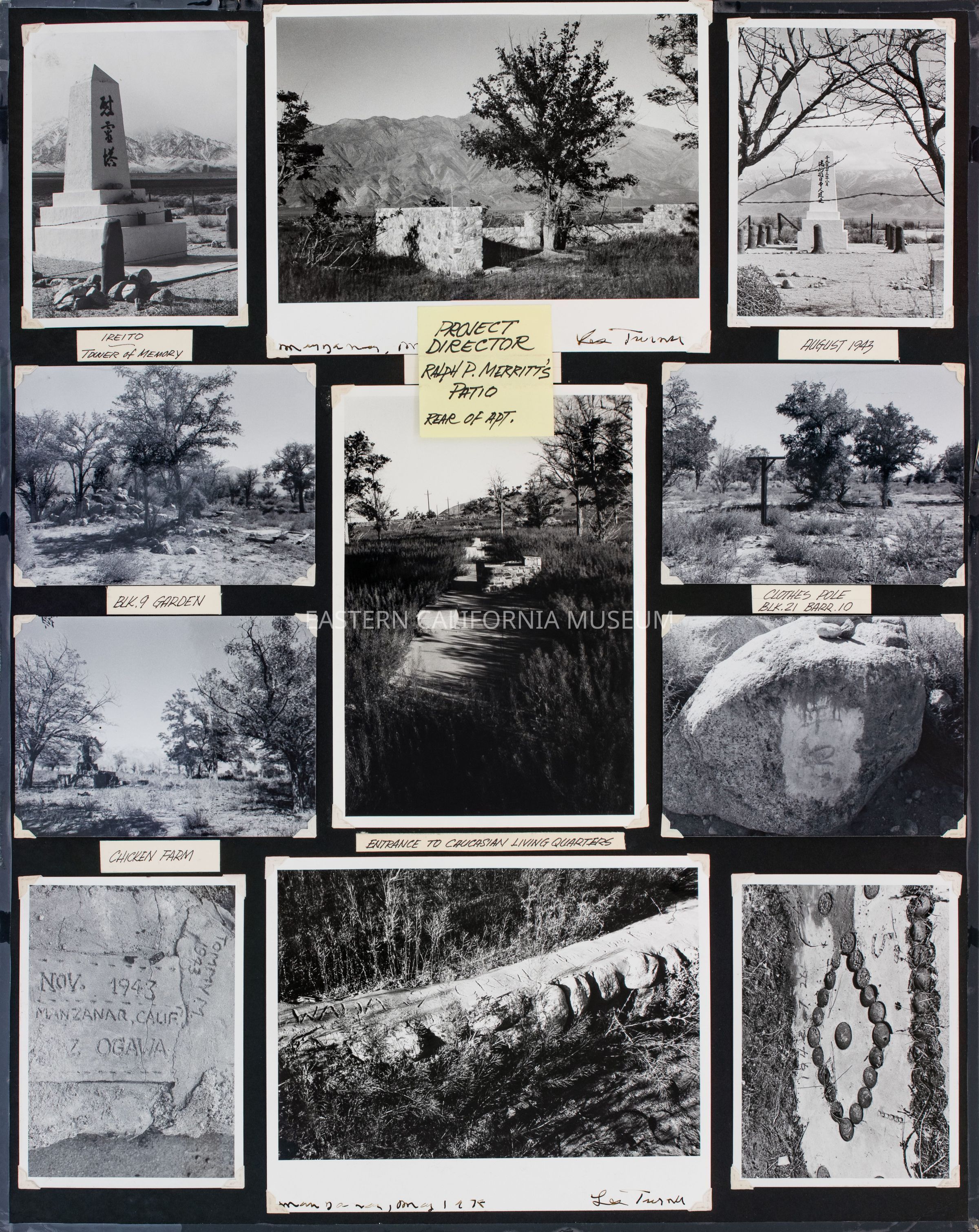 Panel showing the remains of various locations around what used to be Manzanar War Relocation Center.