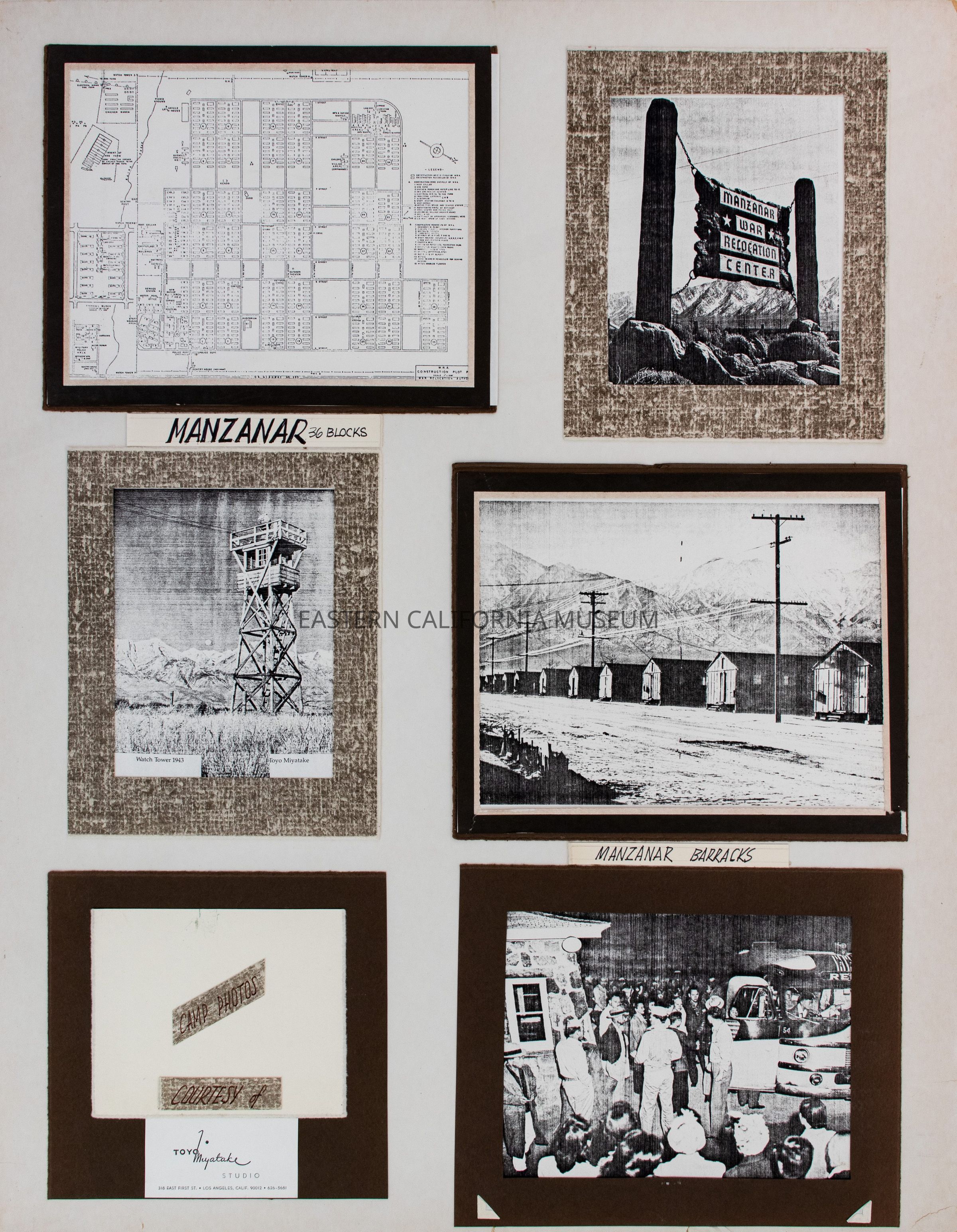 Panel displaying photos taken by Toyo Miyatake at Manzanar War Relocation Center.