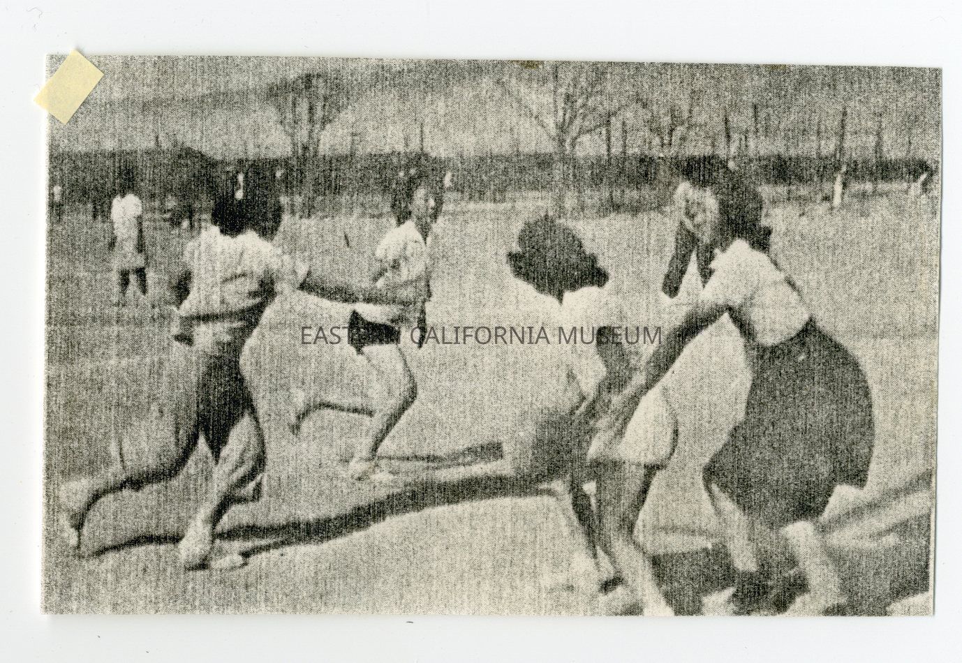 Photocopy of a photo of girls playing basketball.