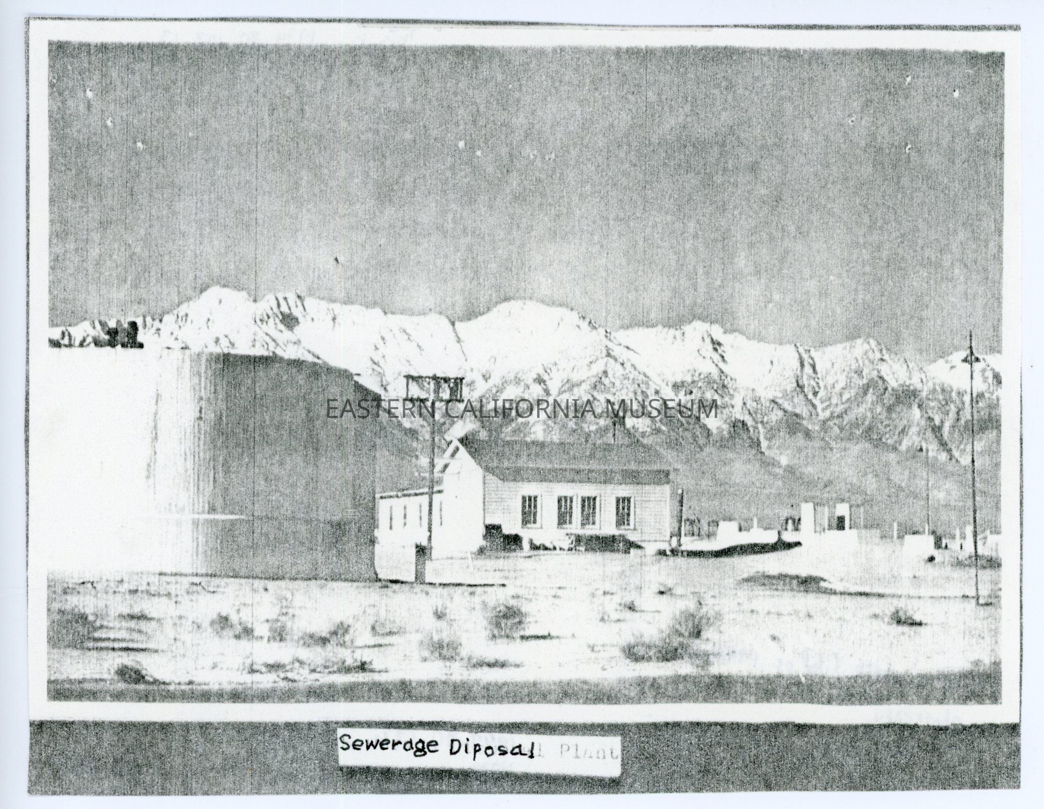 Photocopied photo labeled, "Sewerage Disposal Plant." It is a copy of 1994.80.19i.Collection