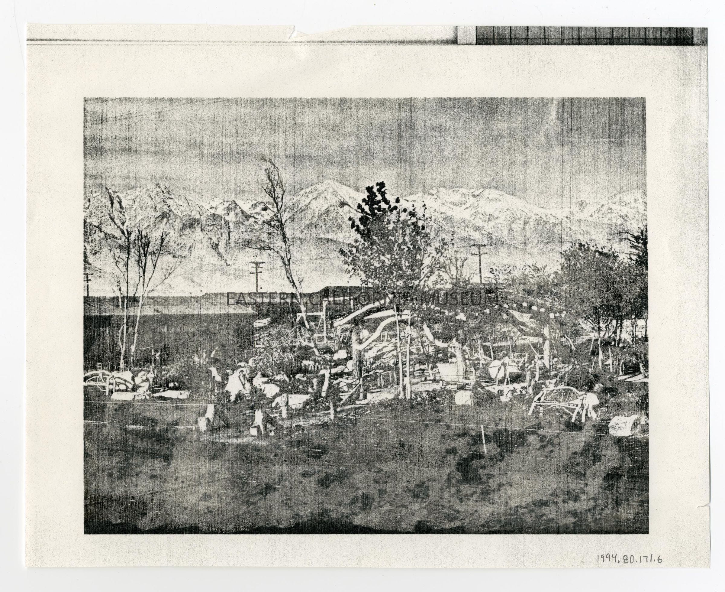 Photocopy of a photo of Merritt Park at Manzanar War Relocation Center in 1944.
