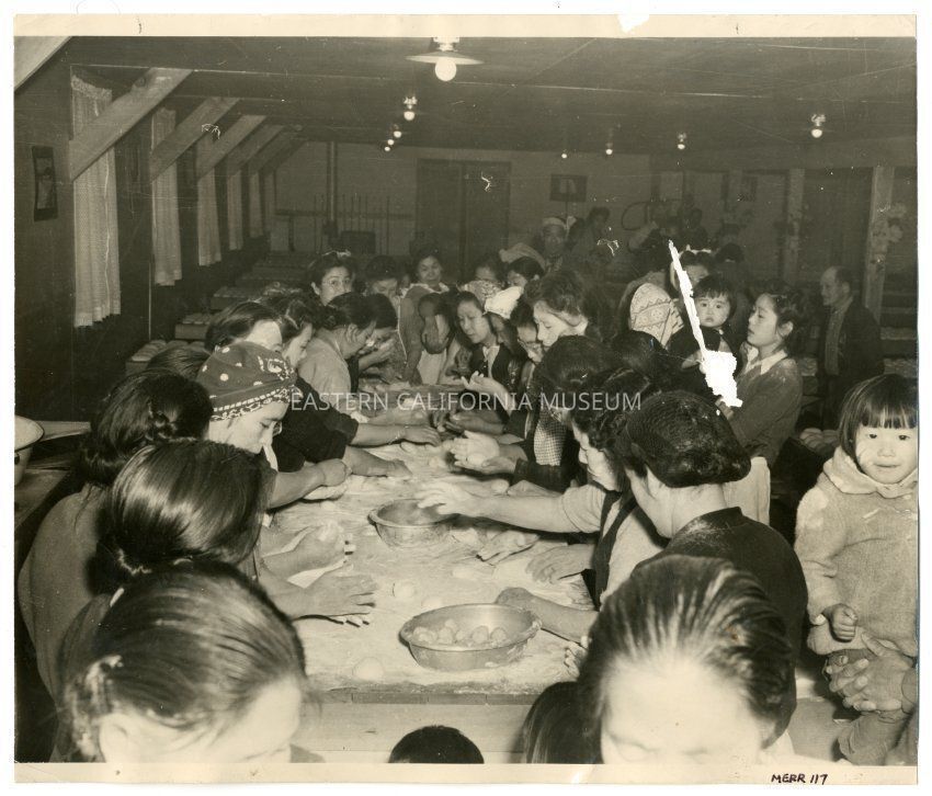 Photograph of making mochi in a mess hall at ManzanarEntry/Object ID