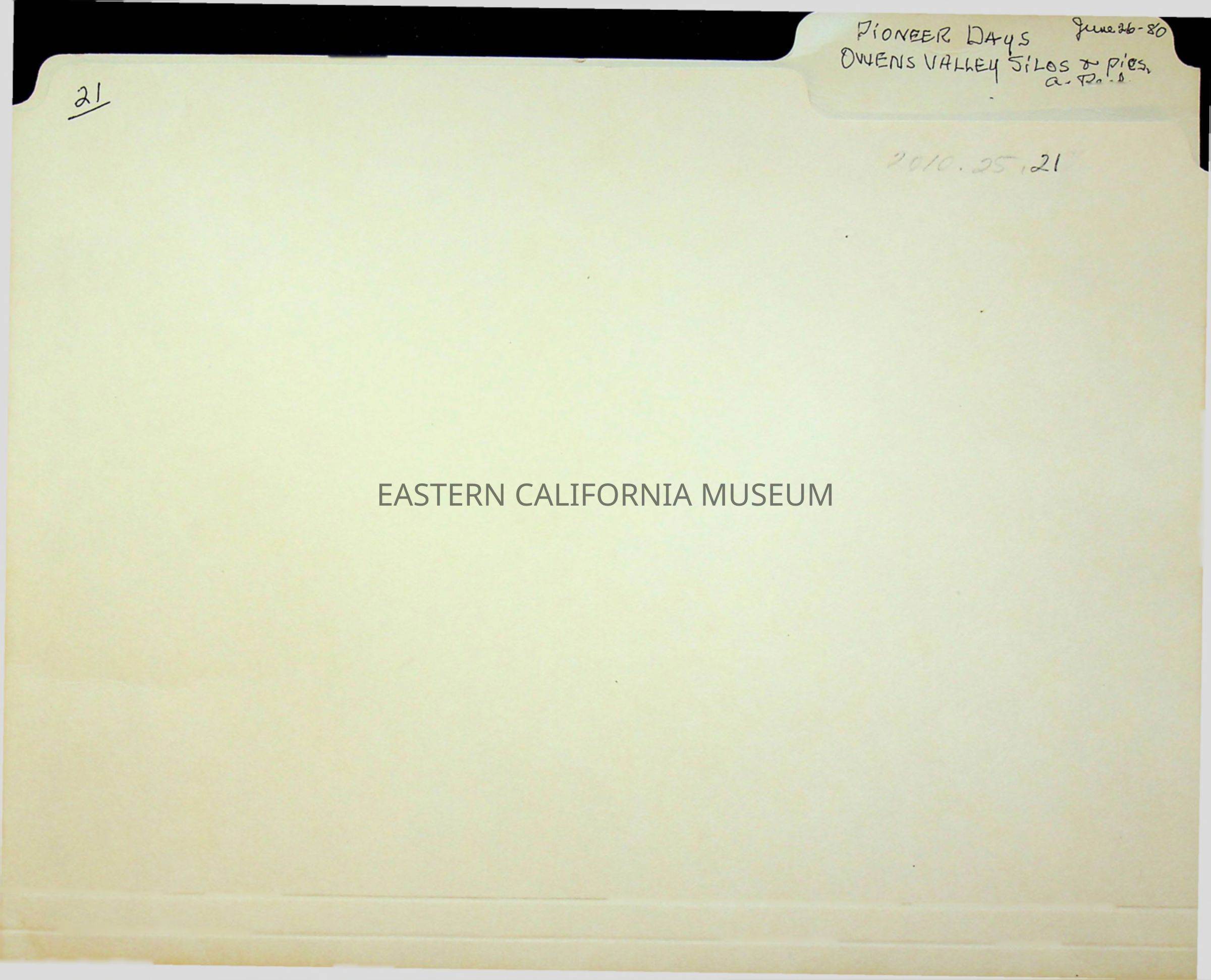 Folder containing notes and newspaper clipping for Adele Reed's series "Pioneer Days." This article titled, "Owens Valley Silos" was published on 06/26/1980.Collection