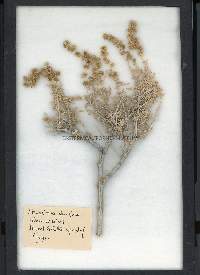 Franseria dumosa Burrow Weed Desert southern part of Inyo On reverse: Stamped with "John Wardel Dixon" Written in pencil "1108-1"