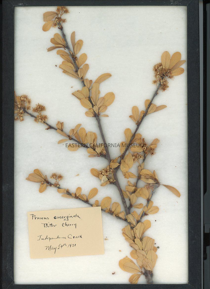 Prunus emarginata Bitter cherry Independence Creek May 24, 1931 On reverse: Written in pencil "25" Riker Specimen Mount label