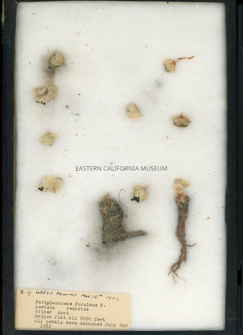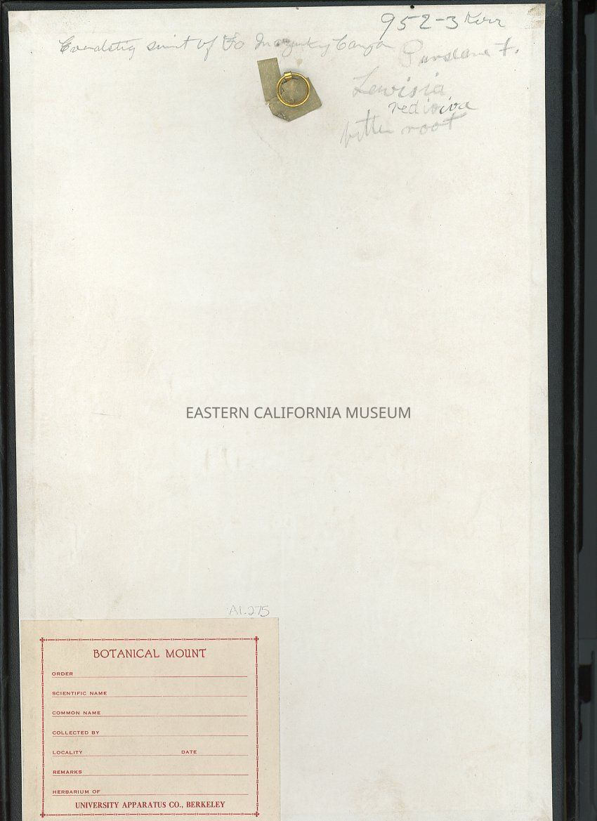 Written in pencil: "952-3 Kerr", "[Illegible words] of Mazourka Canyon", "Purslane F.", "Lewisia rediviva", and "bitter root."Collection