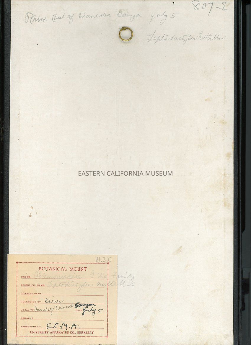 'Phlox head of Waucoba Canyon July 5th, 807-2, Leptodactylon nuttallii' written on top