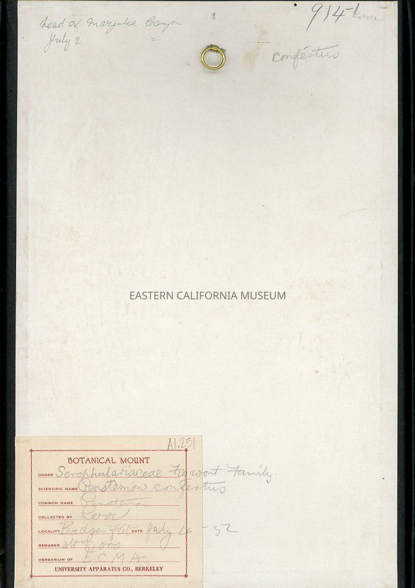 Plant Specimen, MountedEntry/Object ID
