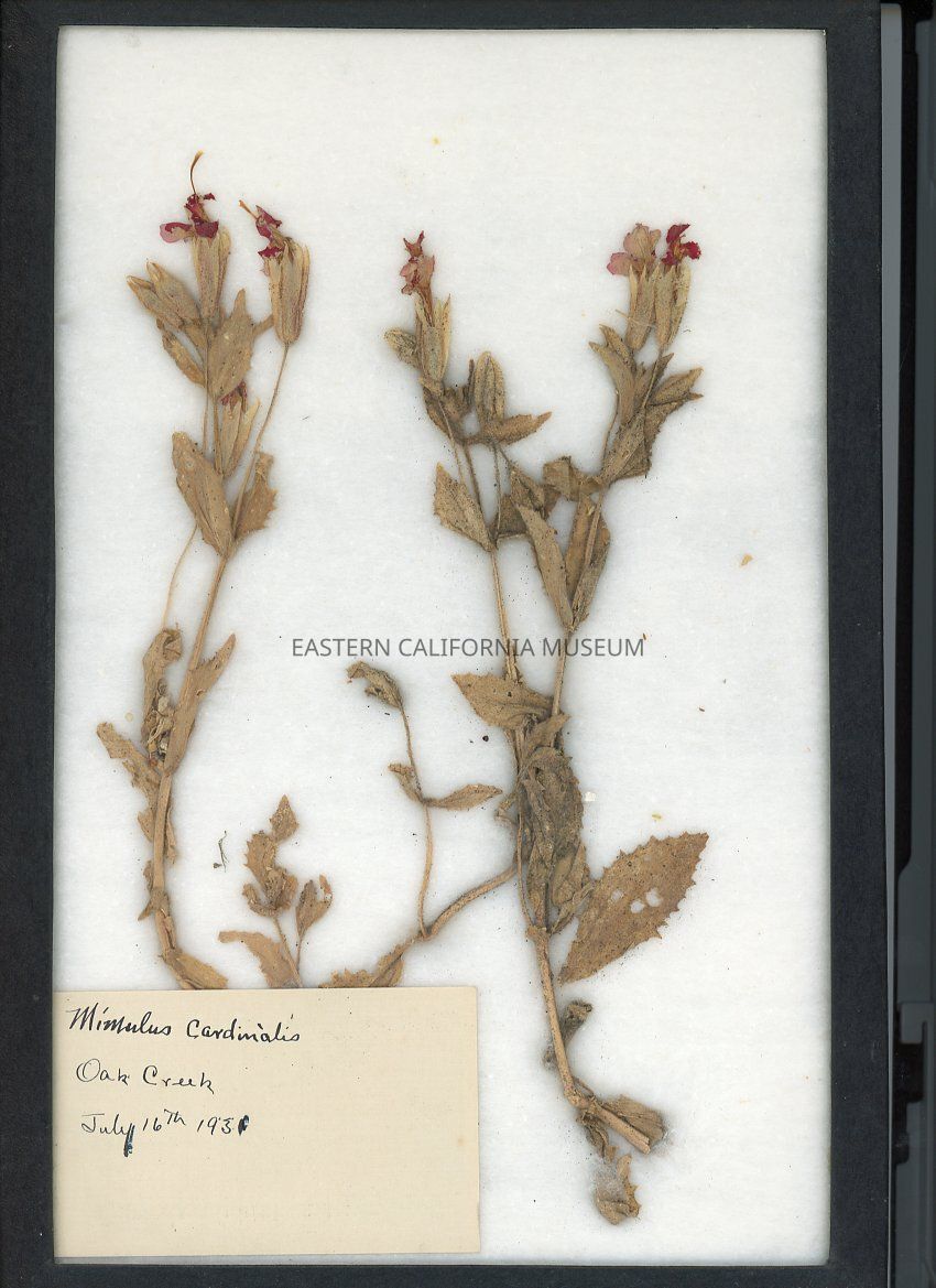 Mimulus Cardinalis Oak Creek July 16th 1931 On Reverse: Stamped:"John Wardell Dixon" "929-5" written in pencil Riker Specimen Mount label