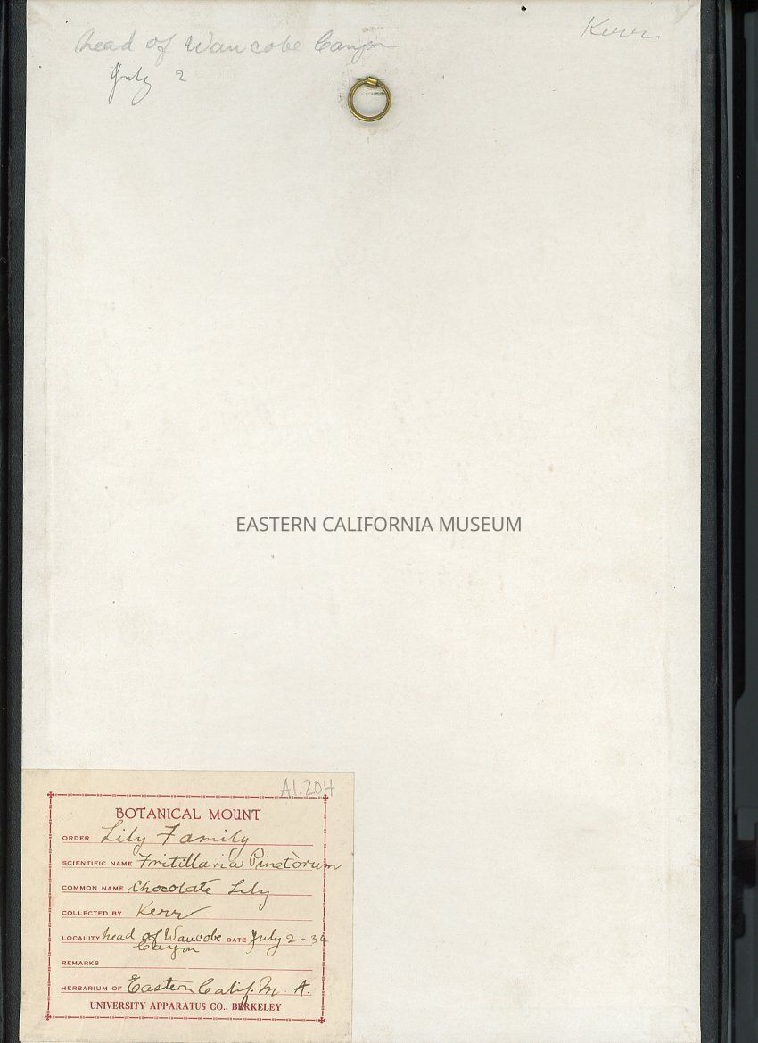 Plant Specimen, MountedEntry/Object ID