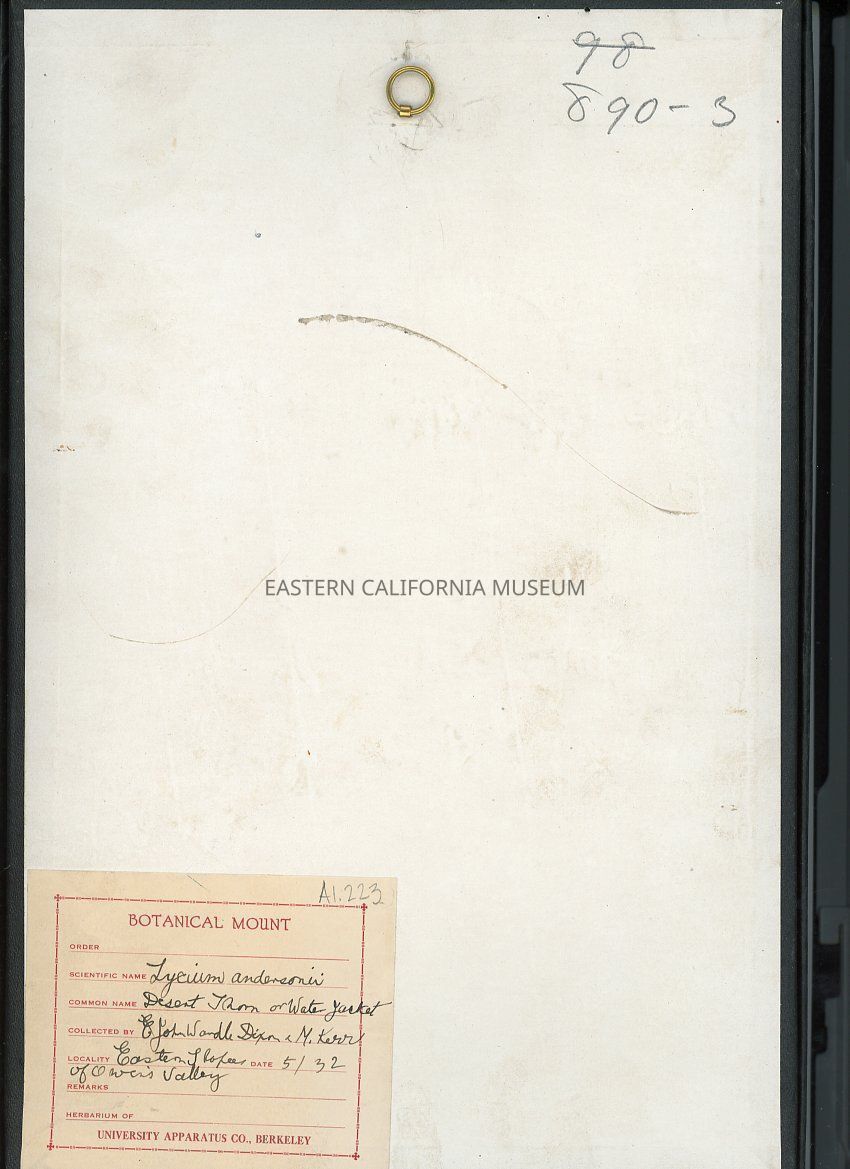 Locality: Eastern Slopes of Owens Valley Date: May 1932Collection