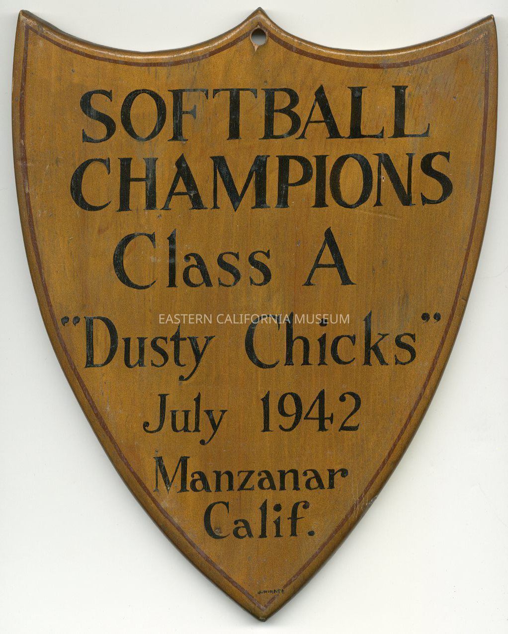 Shield-shaped wooden plaque/trophy with the following painted on it: