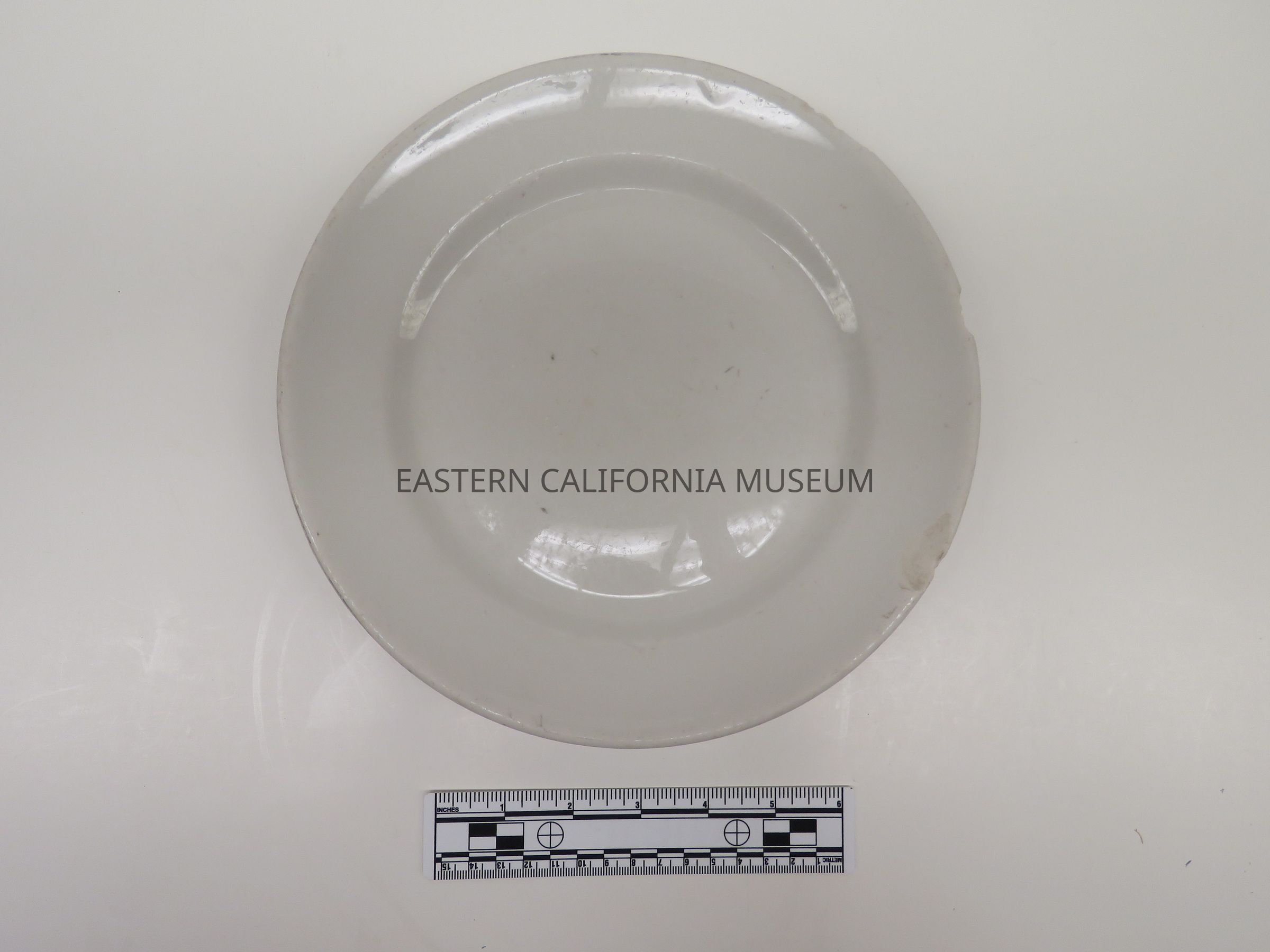 Plain white plate, thick, wish some chipping around rim.