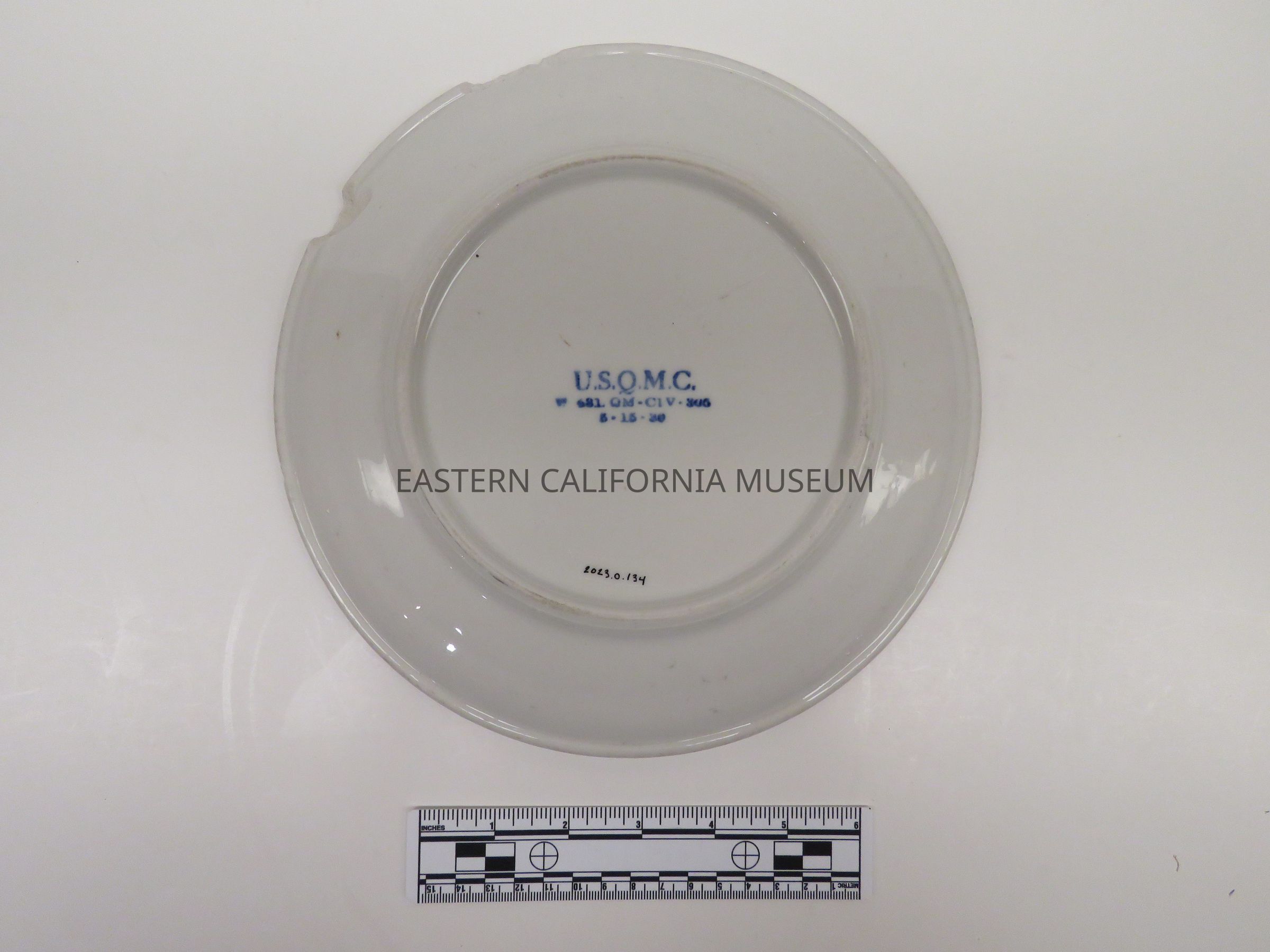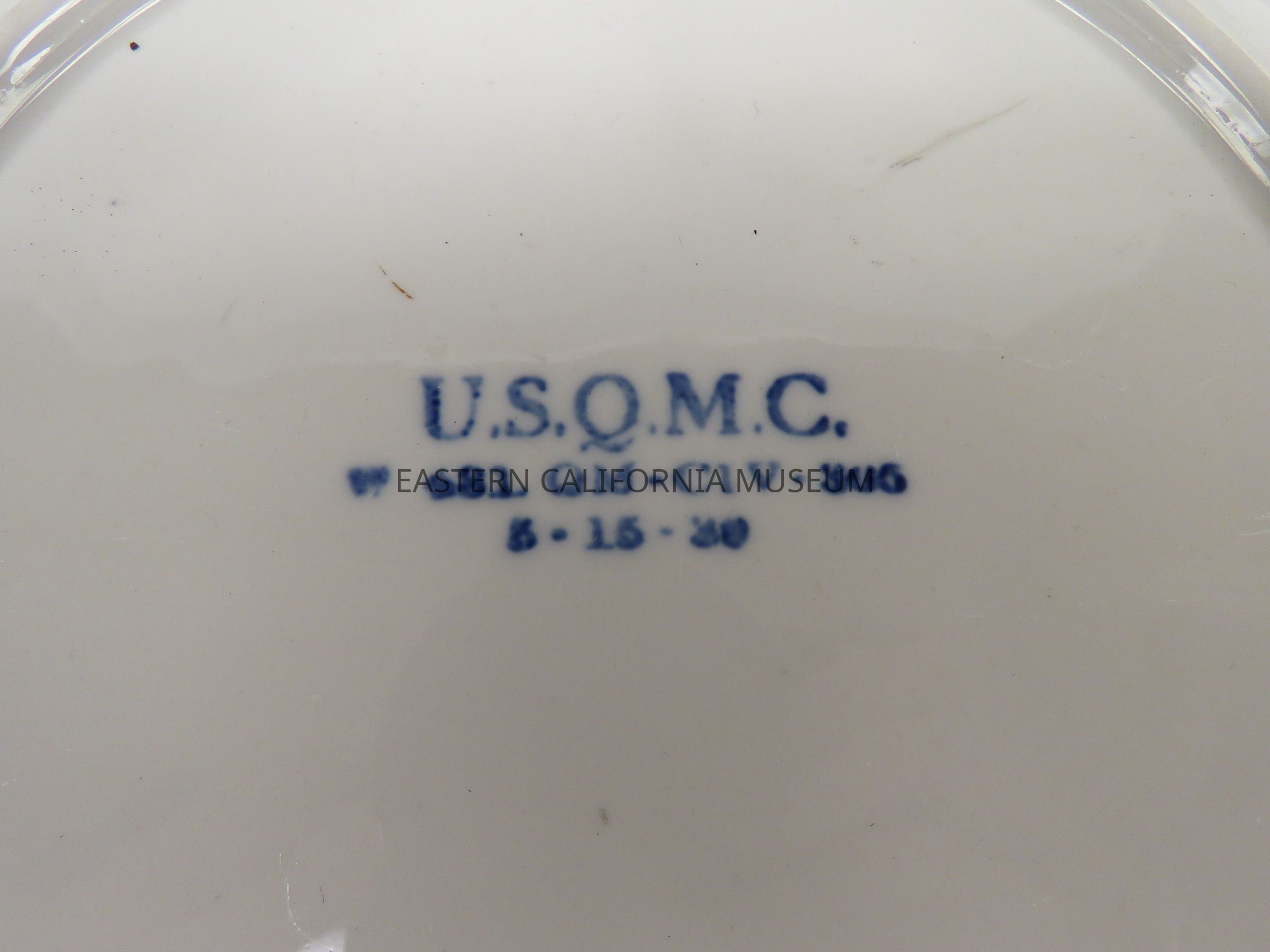 Stamped in blue ink on reverse with "U.S.Q.M.C. [United States Quarter Master Corps] / S.1. QM - C1V - 305 / 5 - 15 - 30."
