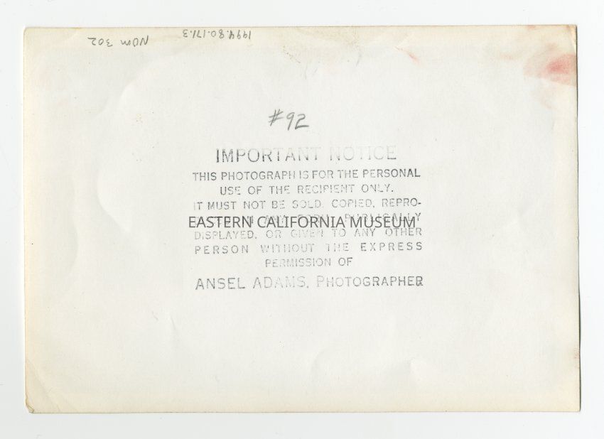 On reverse of photo is Ansel Adams' stamp and #92.Photograph Details